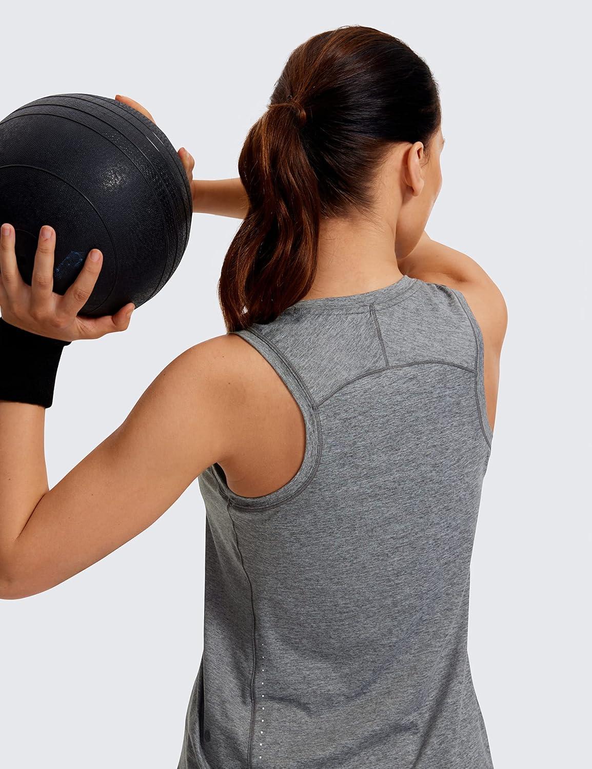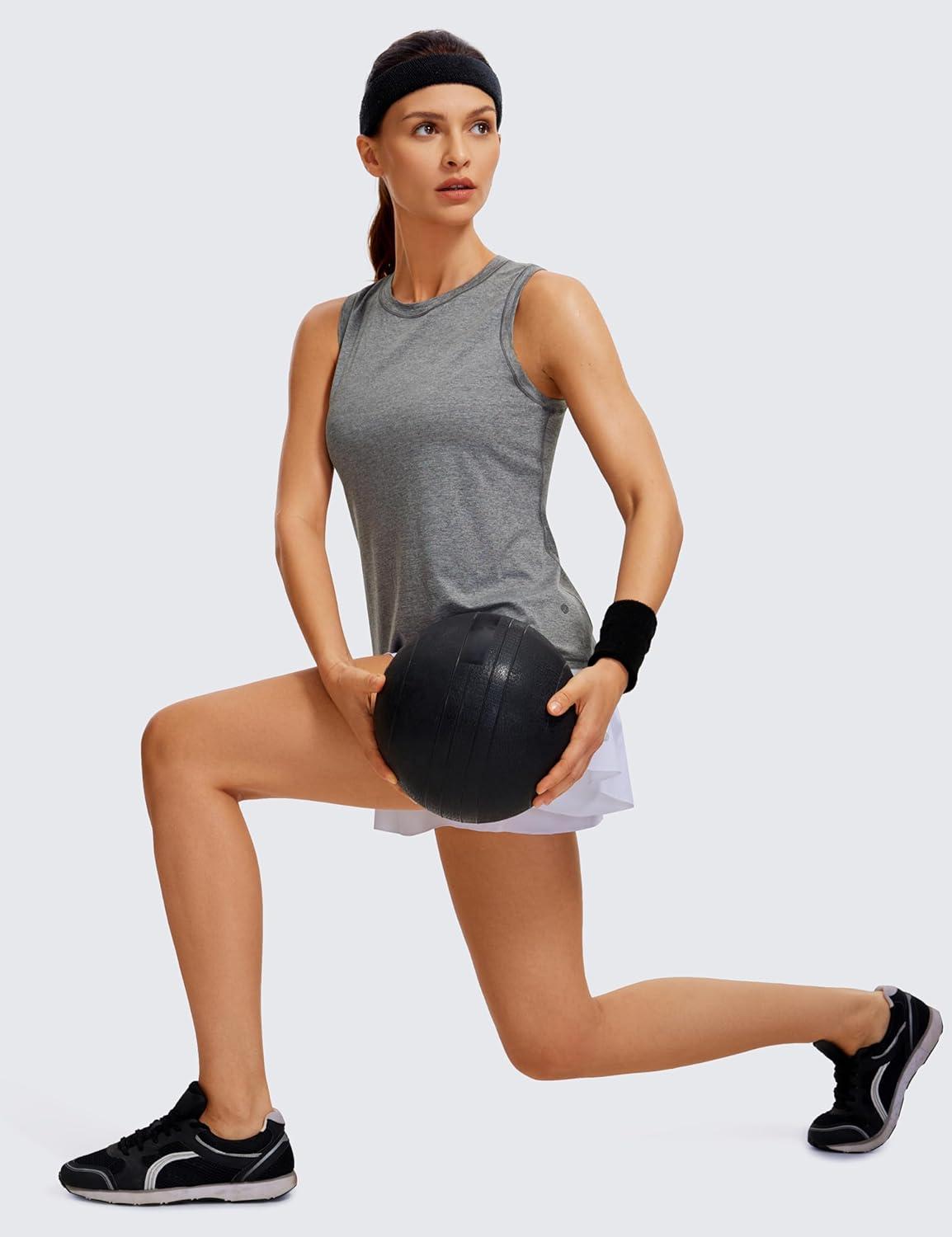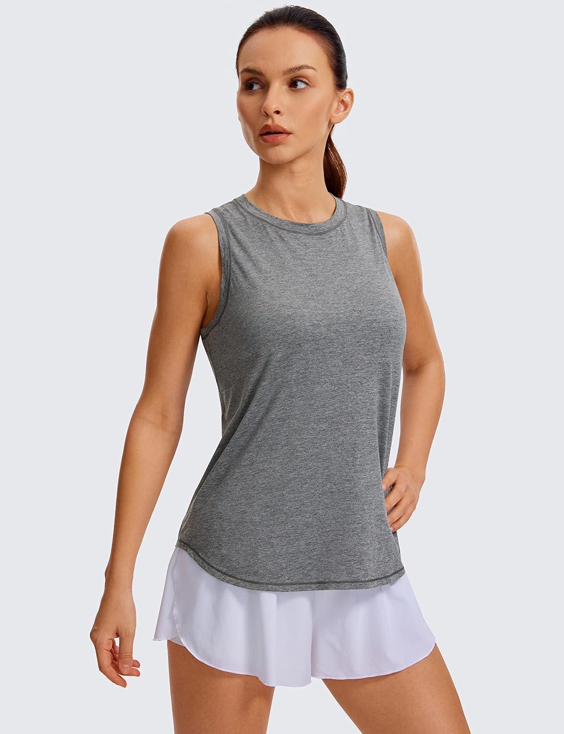 CRZ YOGA Lightweight Workout Tank Tops for Women – Athletic Running Sleeveless Shirts Racerback High Neck T-Shirt(Platinum Heather)