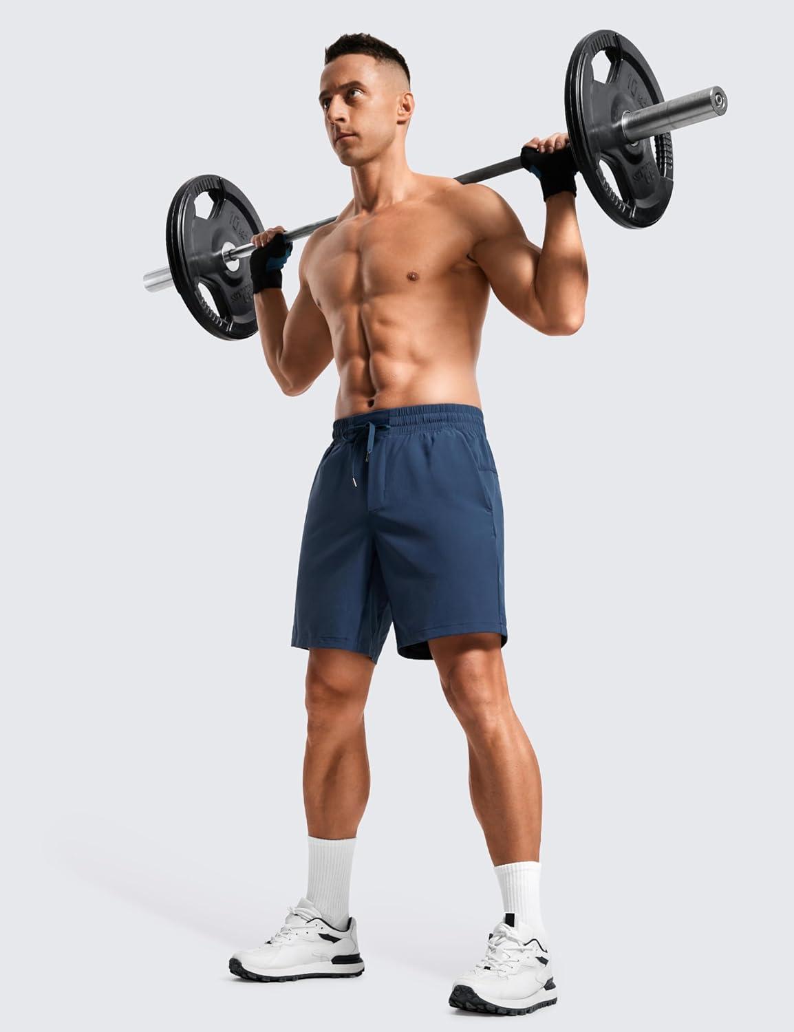 CRZ YOGA Mens 2 in 1 Running Shorts 7″ – Lined Workout Quick Dry Lightweight for Sports Athletic with Pockets(Electric Blue)