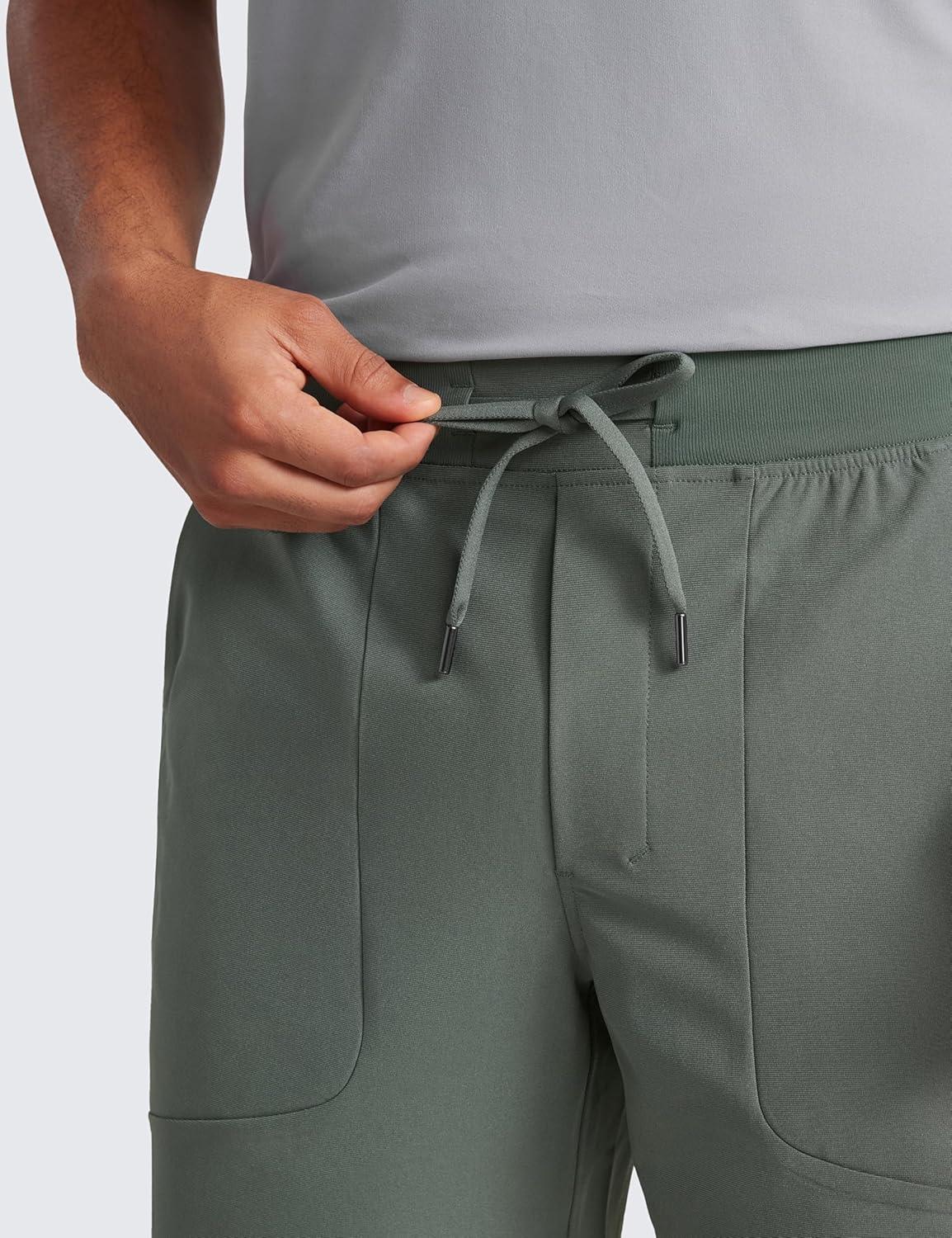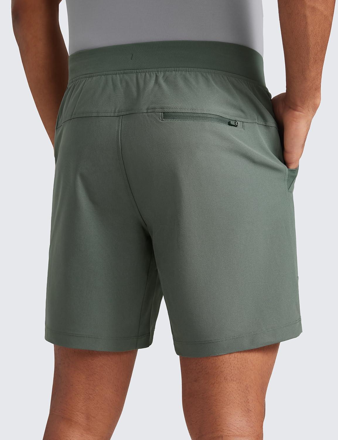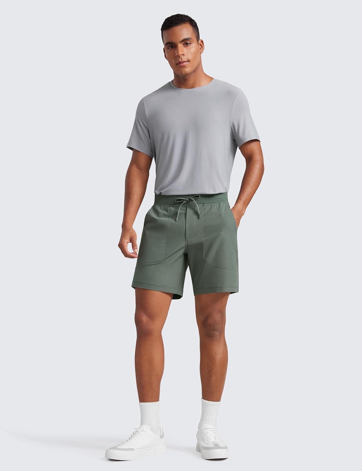 CRZ YOGA Mens All Day Comfy Pull-On Shorts 7″ – Golf Casual Elastic Waist Quick Dry for Athletic Daily with Pockets(Grey Sage)