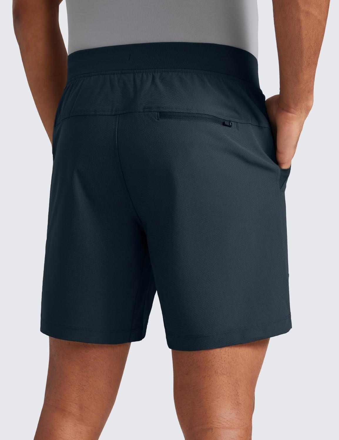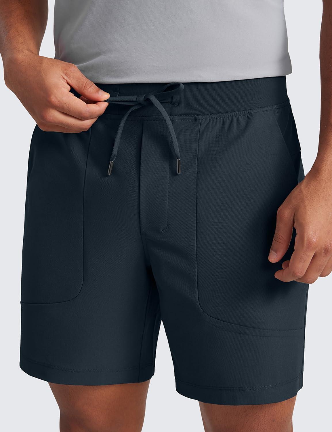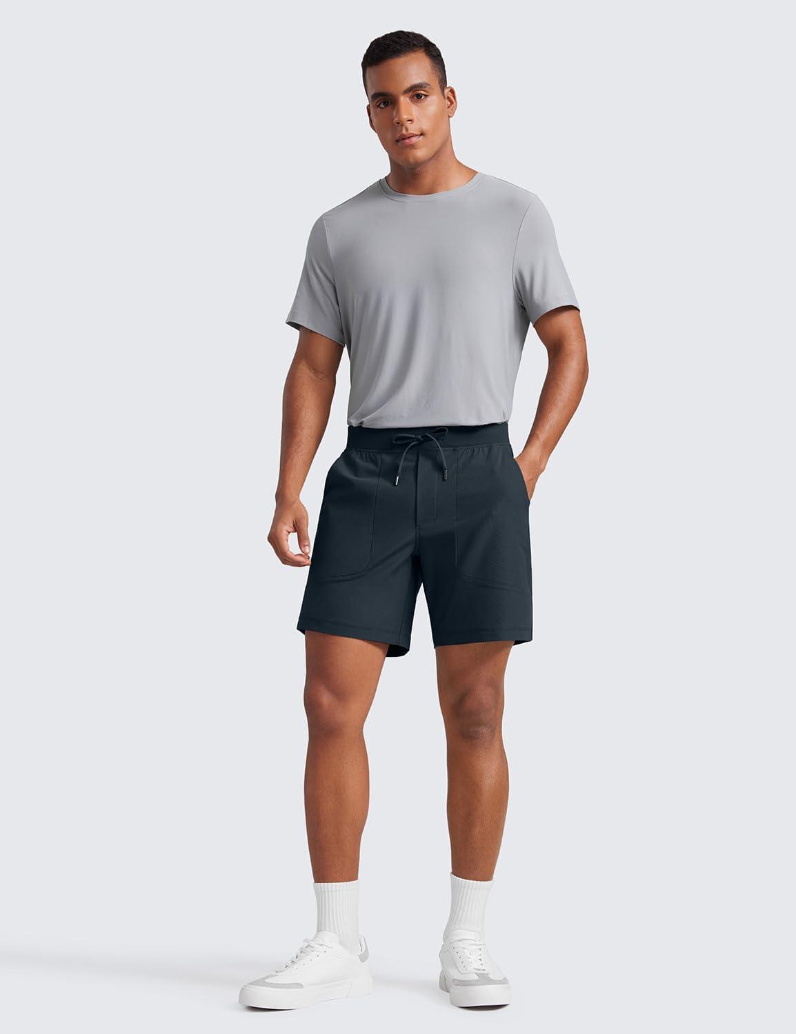 CRZ YOGA Mens All Day Comfy Pull-On Shorts 7″ – Golf Casual Elastic Waist Quick Dry for Athletic Daily with Pockets(True Navy)