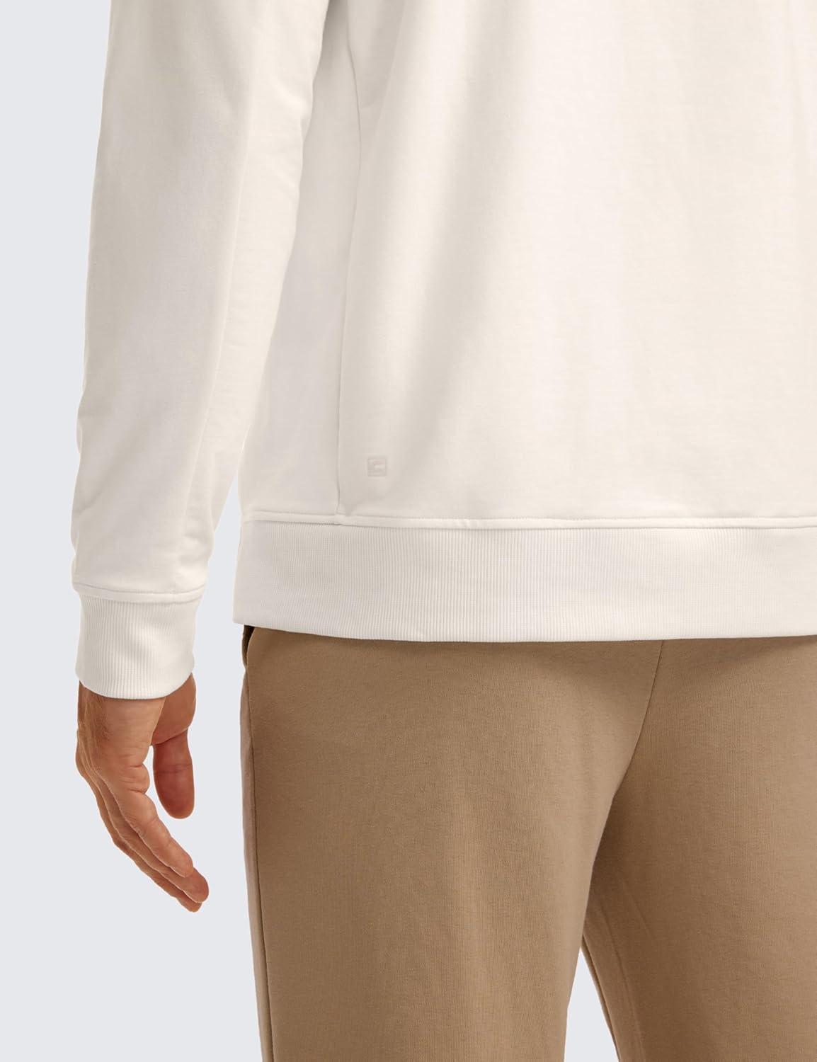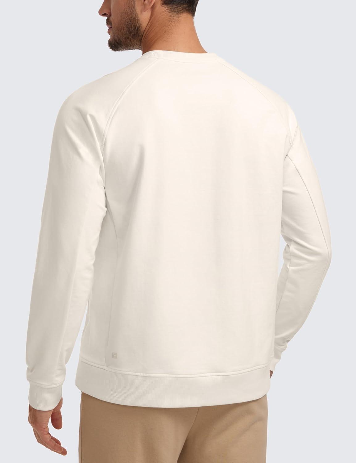 CRZ YOGA Mens Crewneck Sweatshirts French Terry Athletic Workout Sweat Shirts Casual Pullover Tops with Zipper Pocket(Milky White (Bone))