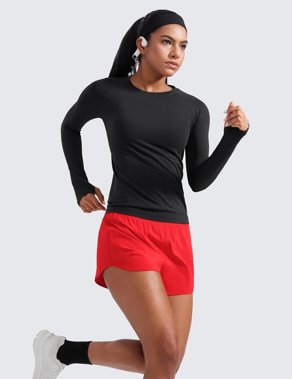 CRZ YOGA Mid Flat Waisted Running Shorts for Women 3″ – Mesh Liner Quick Dry for Workout Sport Athletic with Zipper Pocket(Deep Red)