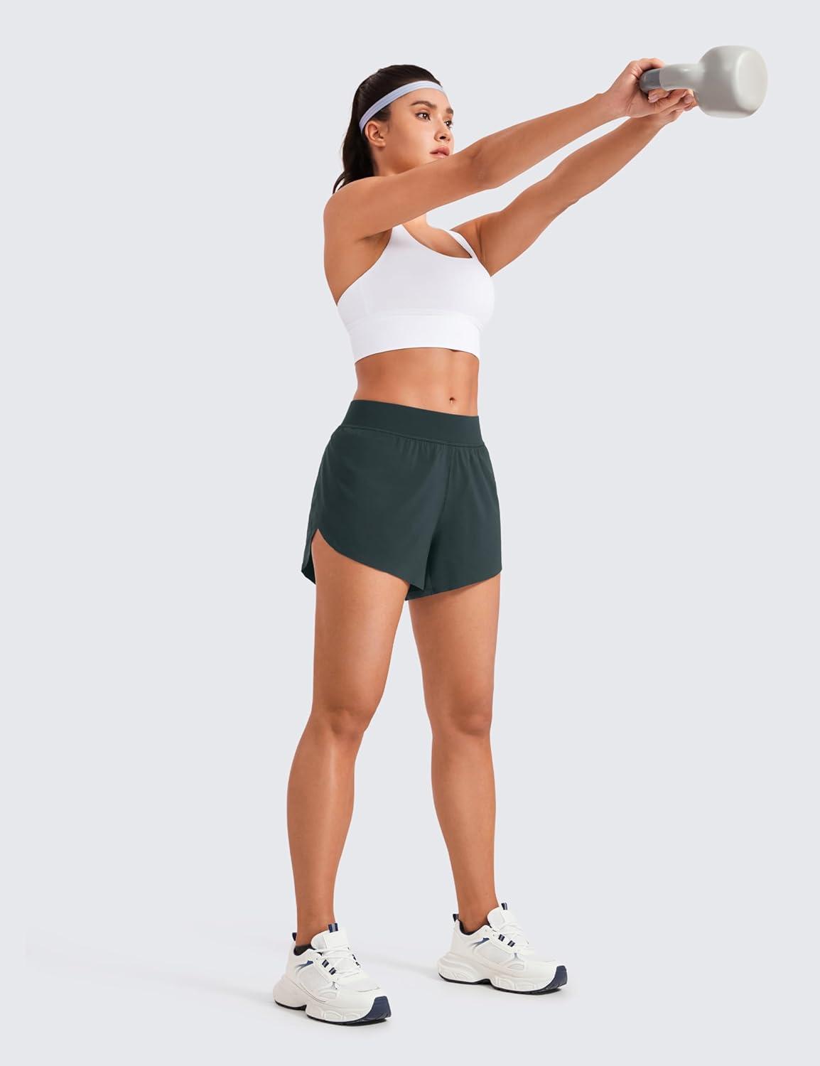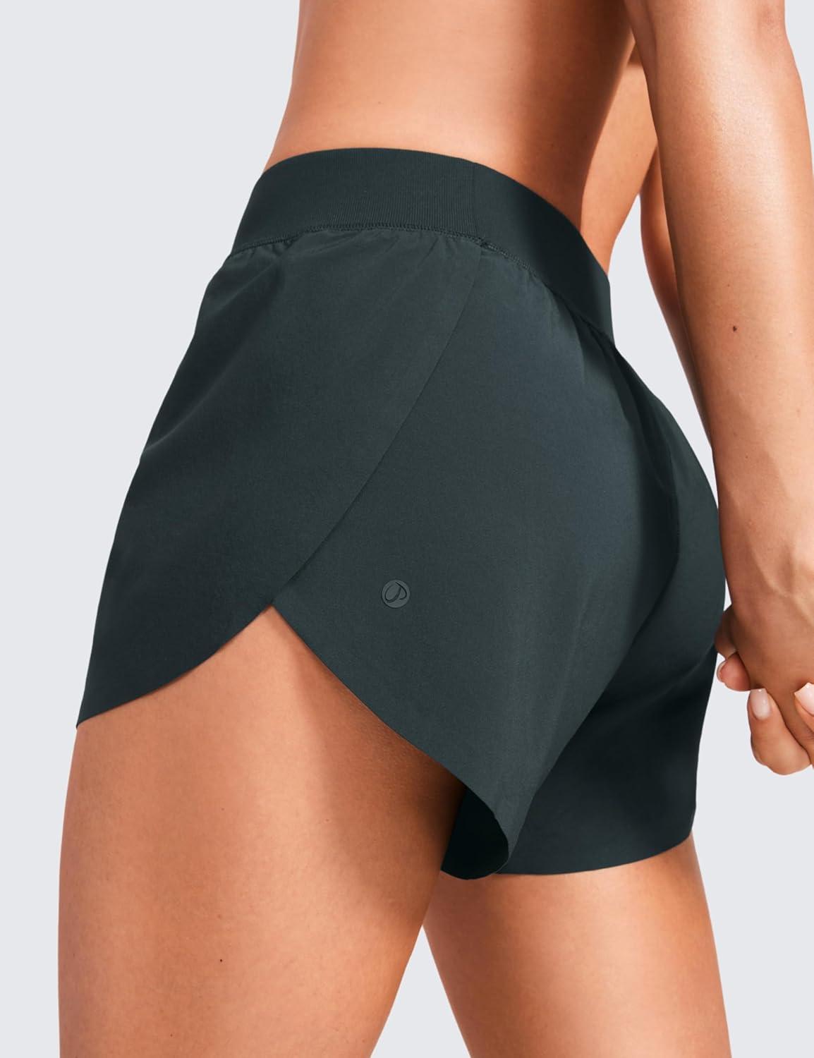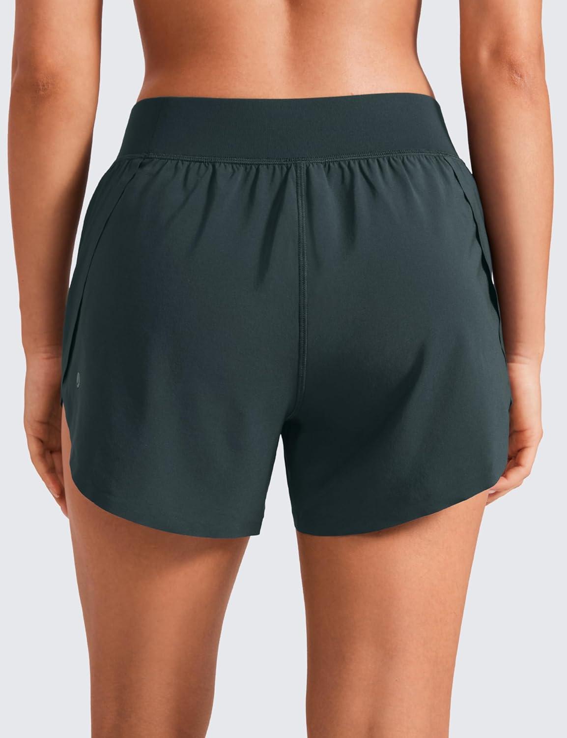 CRZ YOGA Mid Waisted Split Running Shorts for Women 4″ – Comfy Mesh Liner for Workout Athletic Gym Track Quick Dry(Melanite)