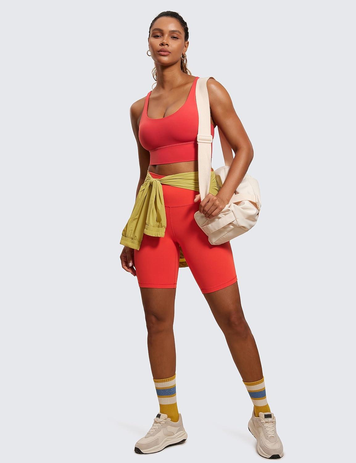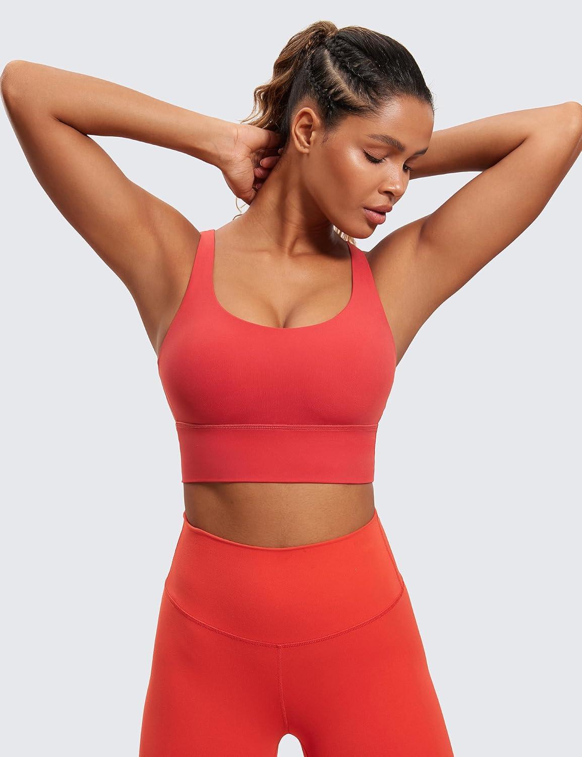 CRZ YOGA Naked Feeling Strappy Longline Sports Bras for Women – Medium Impact Criss Cross Yoga Padded Workout Crop Top(Crimson)