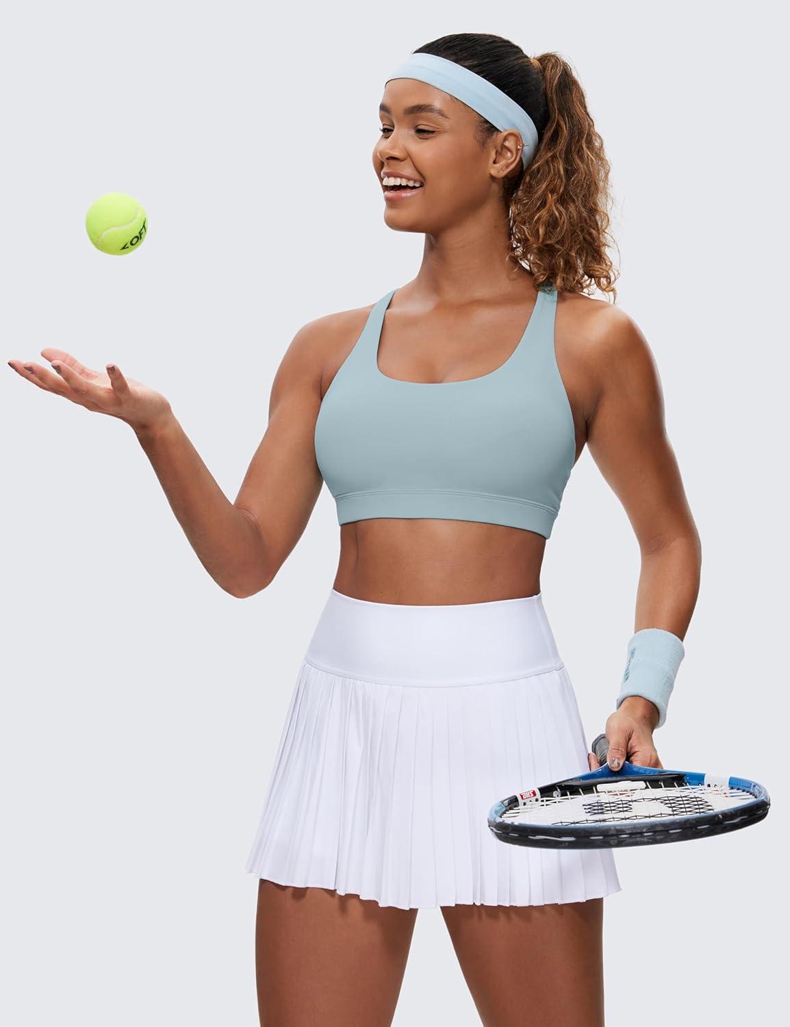 CRZ YOGA Naked Feeling Strappy Padded Sports Bras for Women – Fitness Workout Top Criss Cross Back Yoga Cami(Cambric Blue)