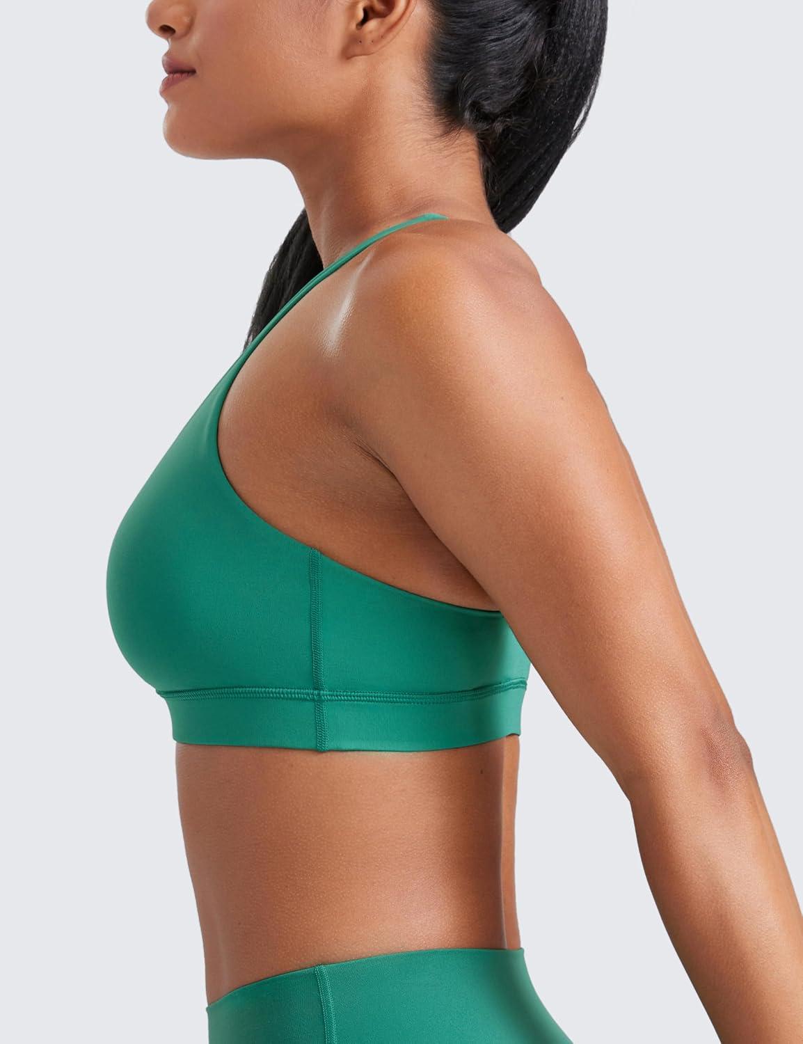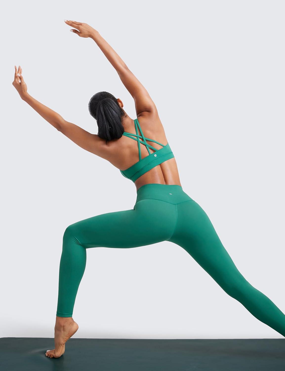 CRZ YOGA Naked Feeling Strappy Padded Sports Bras for Women – Fitness Workout Top Criss Cross Back Yoga Cami(Cascadia Green)