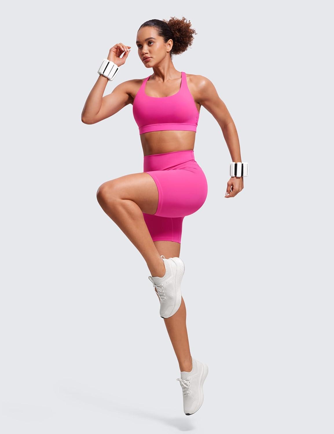 CRZ YOGA Naked Feeling Strappy Padded Sports Bras for Women – Fitness Workout Top Criss Cross Back Yoga Cami(Hibiscus Purple)