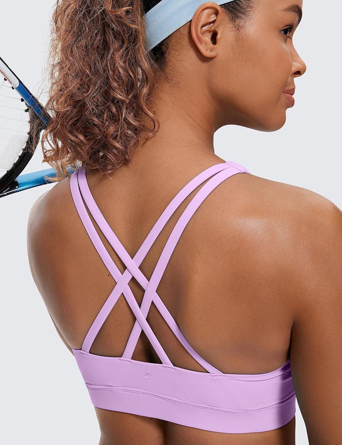 CRZ YOGA Naked Feeling Strappy Padded Sports Bras for Women – Fitness Workout Top Criss Cross Back Yoga Cami(Lilac)