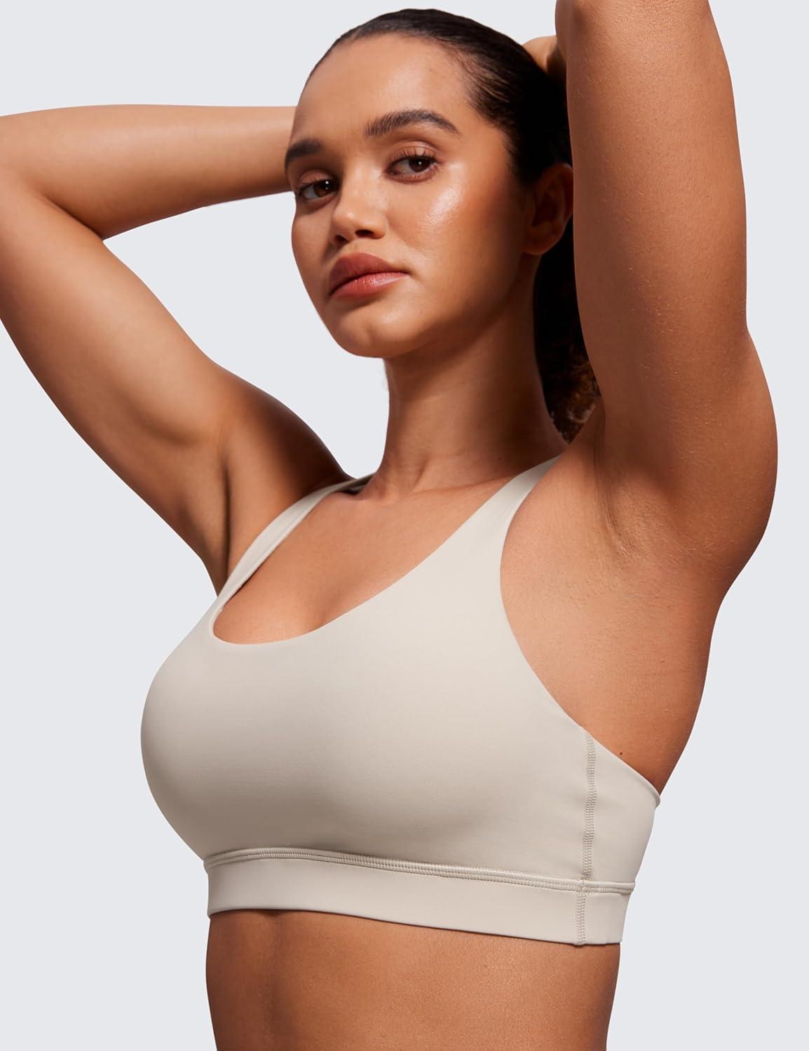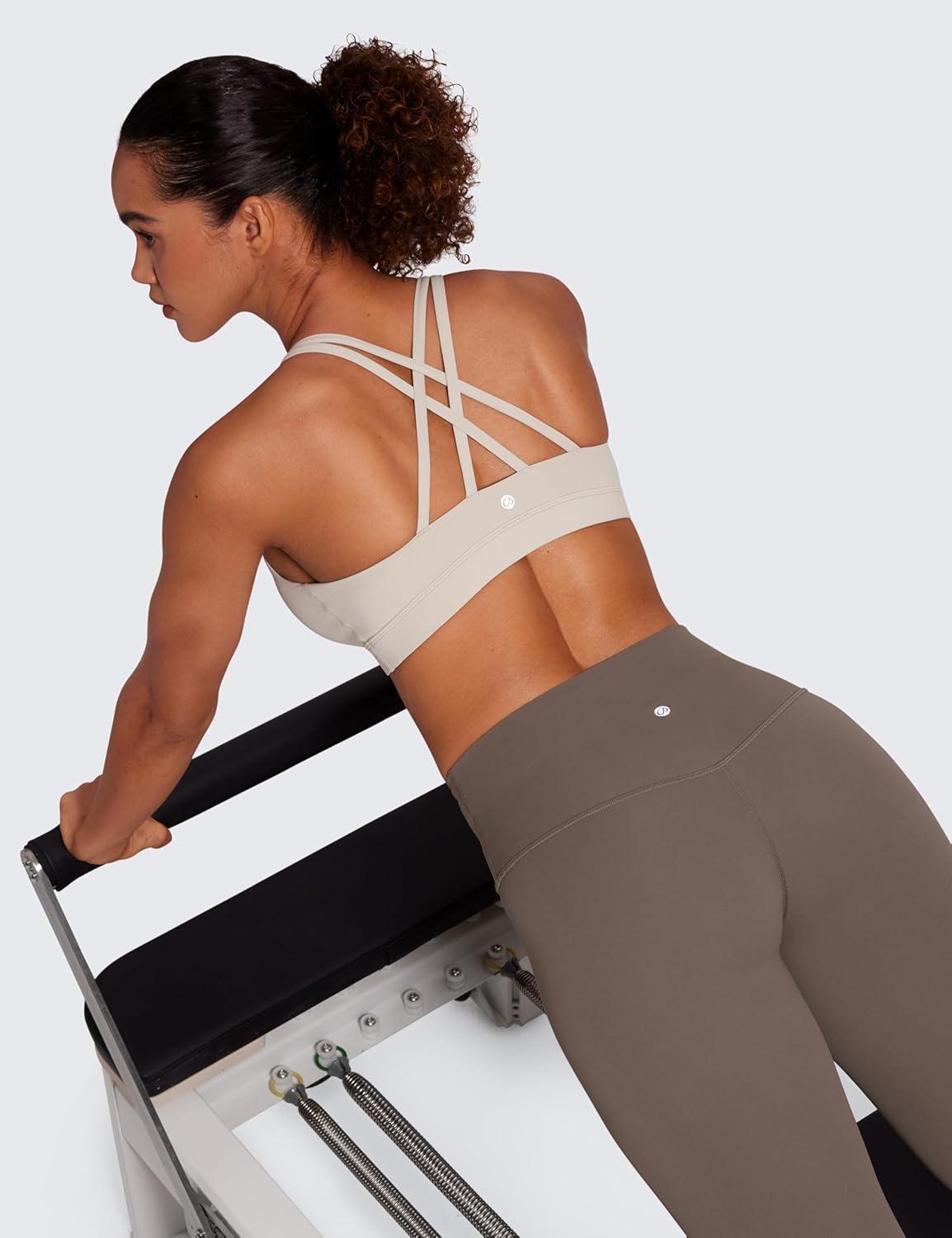 CRZ YOGA Naked Feeling Strappy Padded Sports Bras for Women – Fitness Workout Top Criss Cross Back Yoga Cami(Mojave Tan)