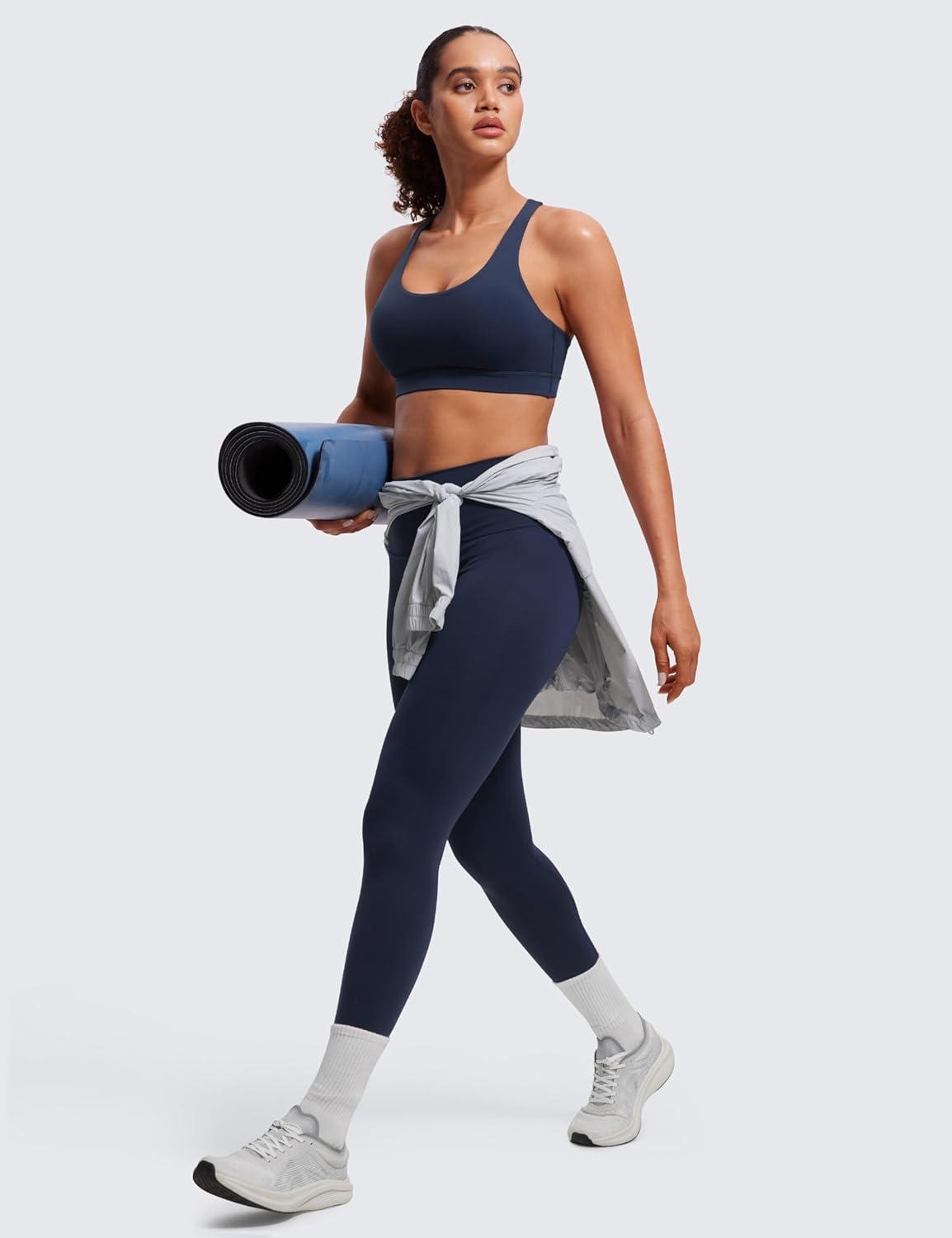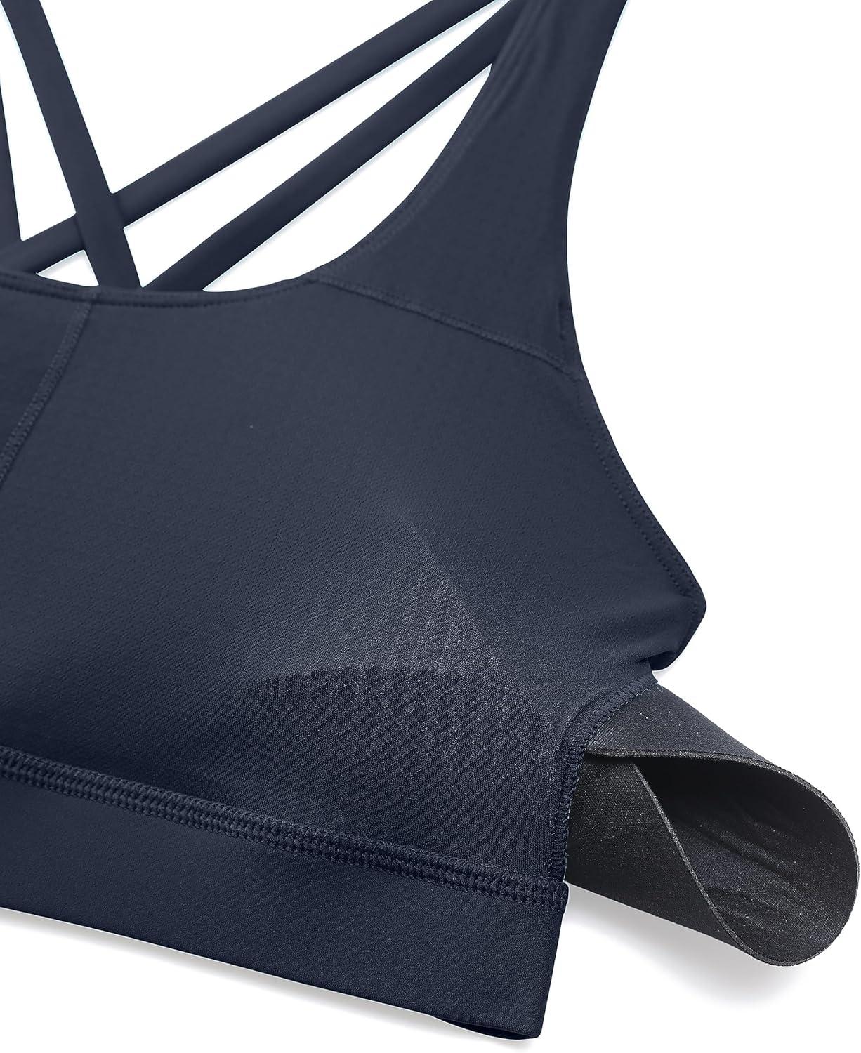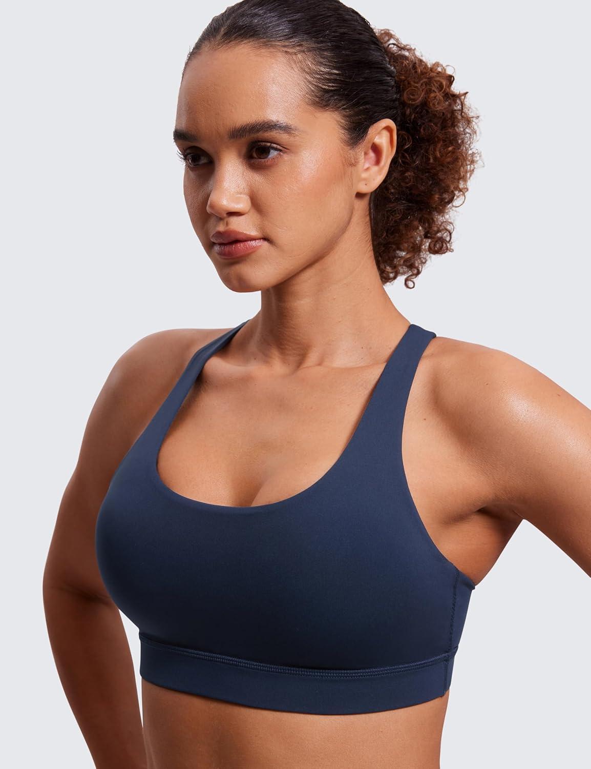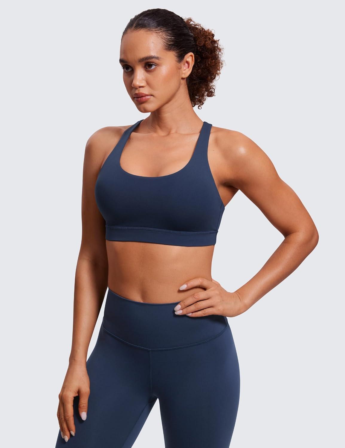 CRZ YOGA Naked Feeling Strappy Padded Sports Bras for Women – Fitness Workout Top Criss Cross Back Yoga Cami(Navy)