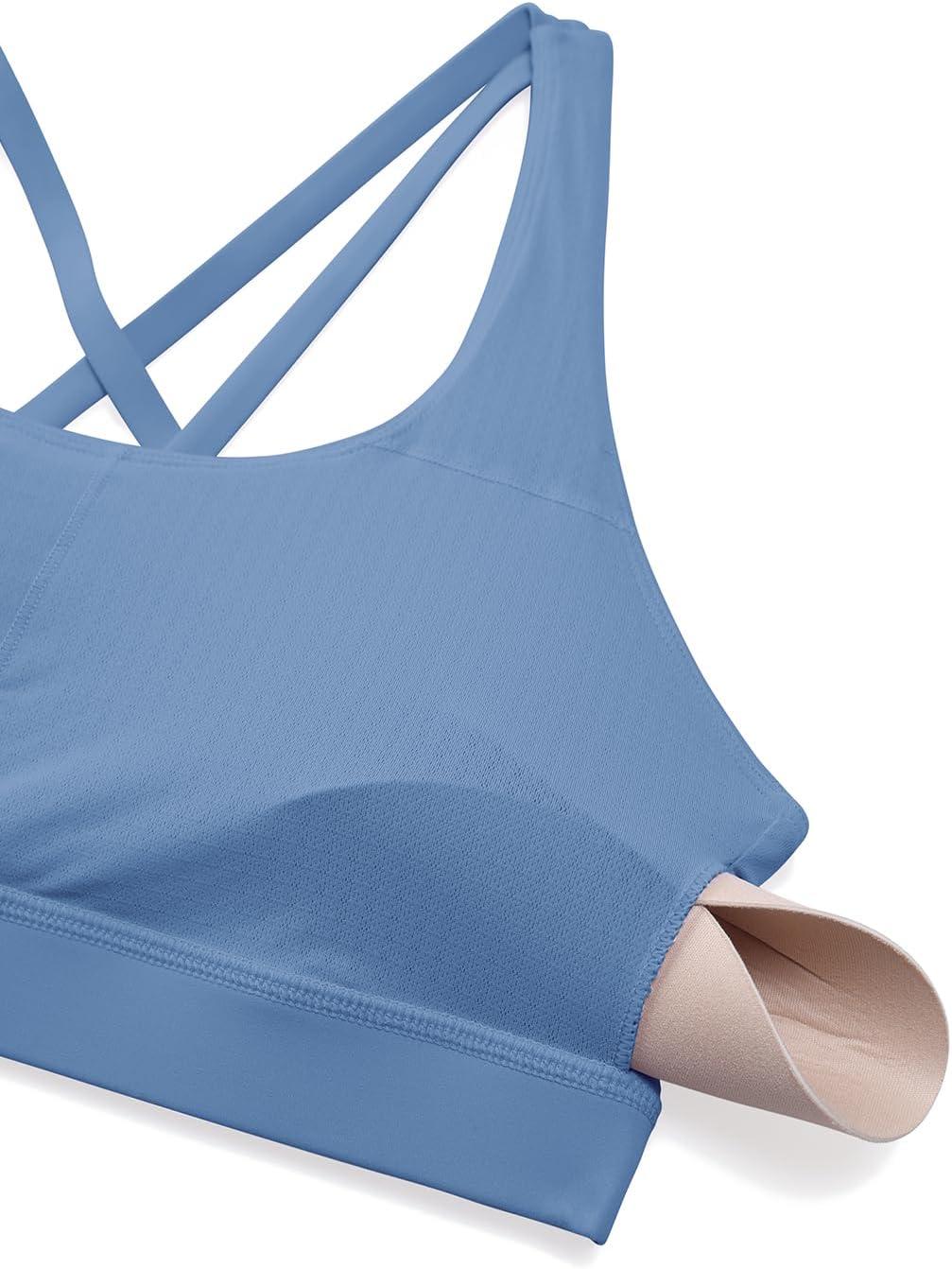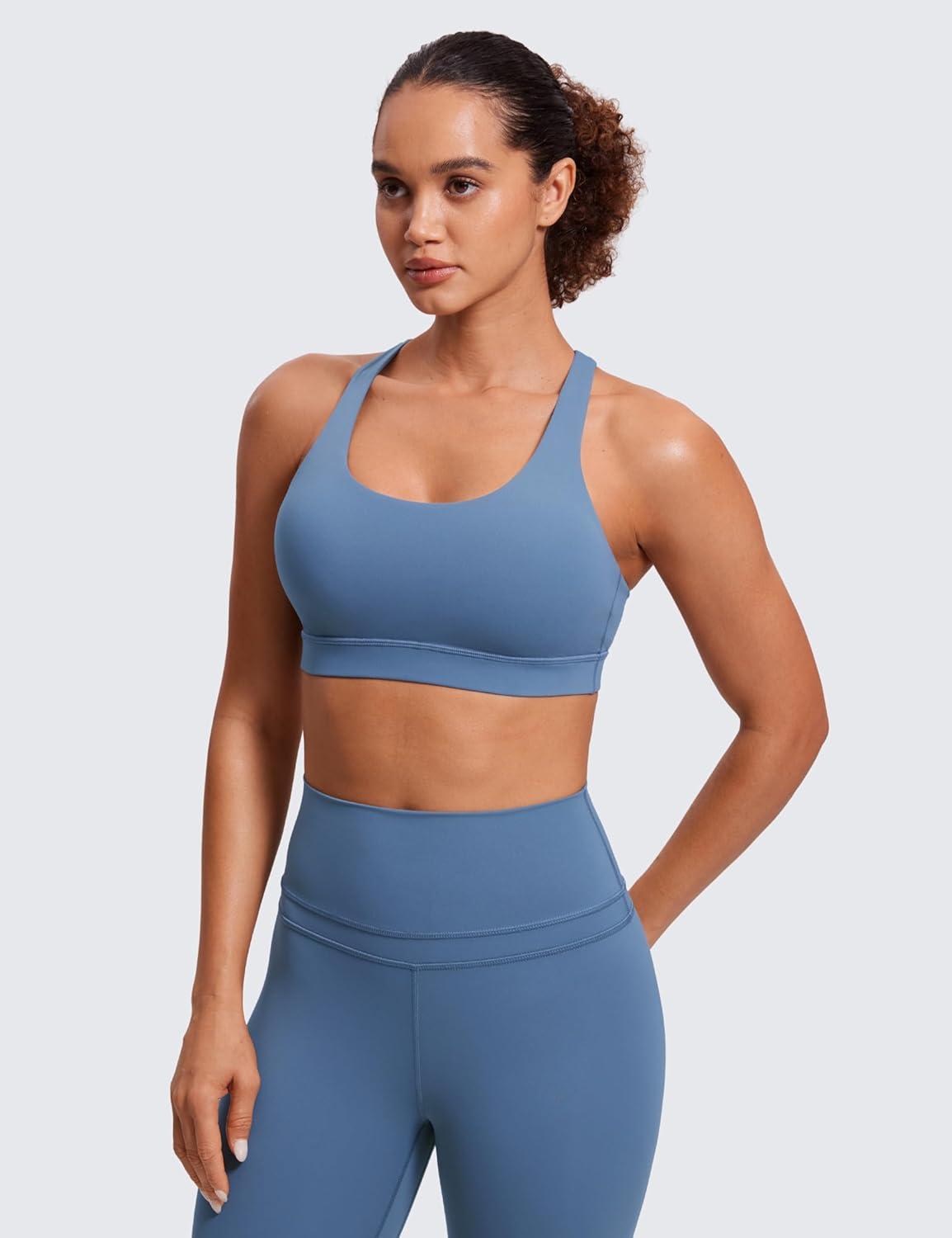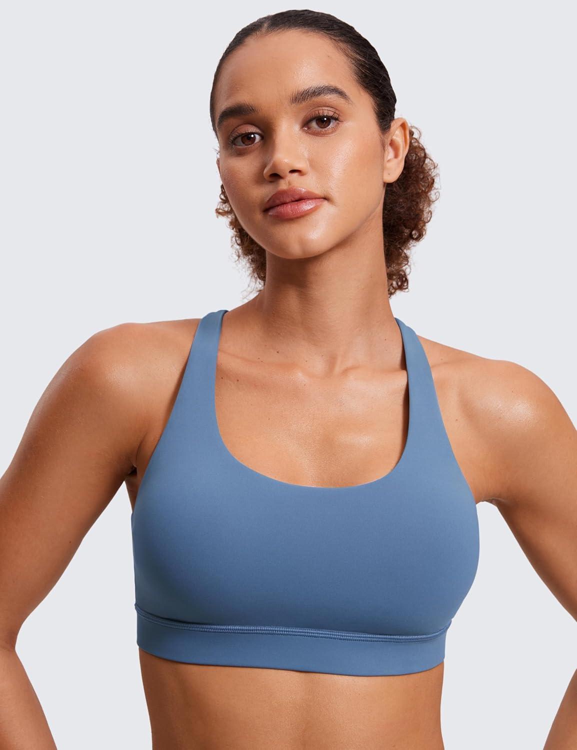 CRZ YOGA Naked Feeling Strappy Padded Sports Bras for Women – Fitness Workout Top Criss Cross Back Yoga Cami(Oasis Blue)