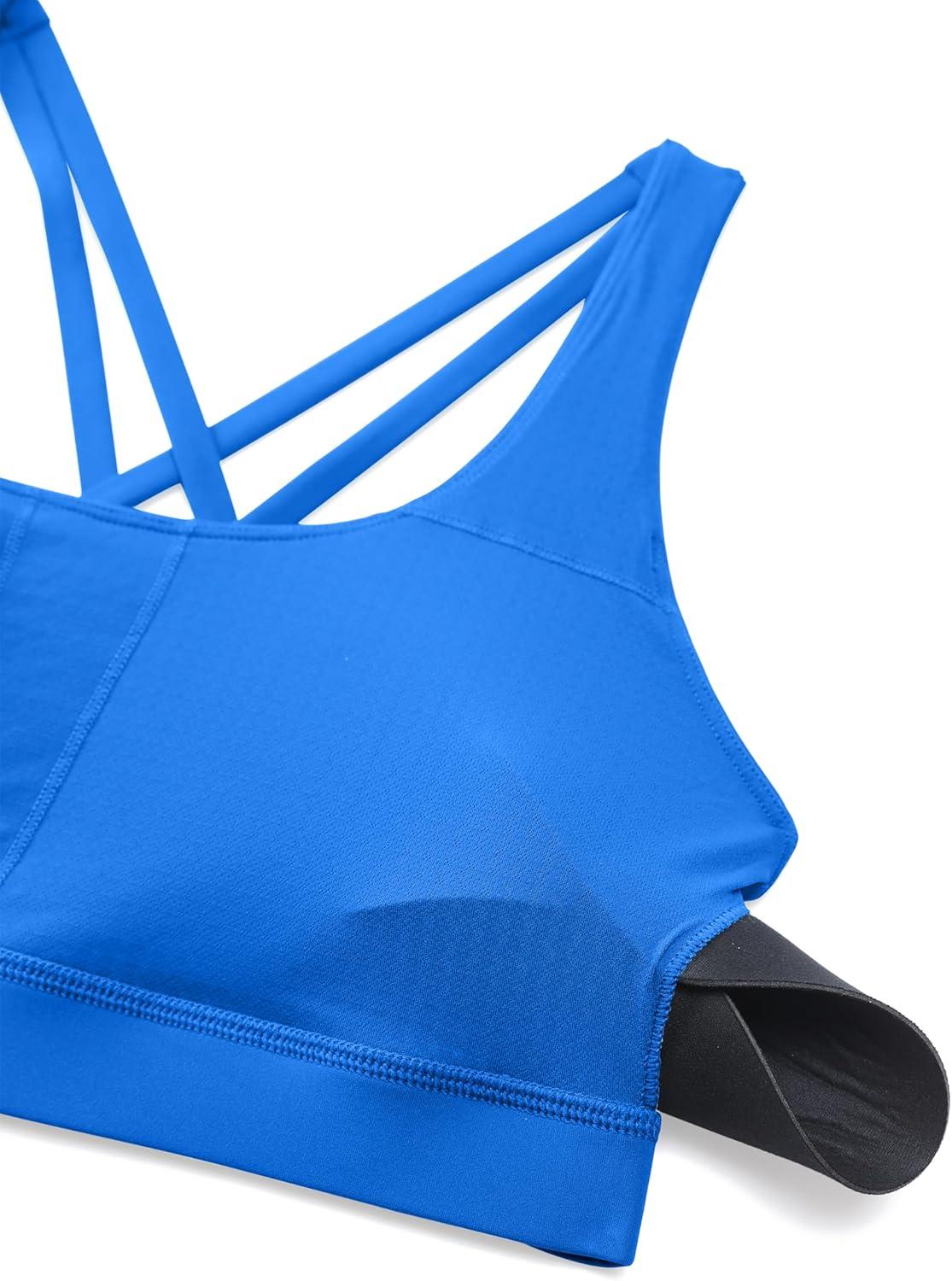 CRZ YOGA Naked Feeling Strappy Padded Sports Bras for Women – Fitness Workout Top Criss Cross Back Yoga Cami(Sparkle Blue)