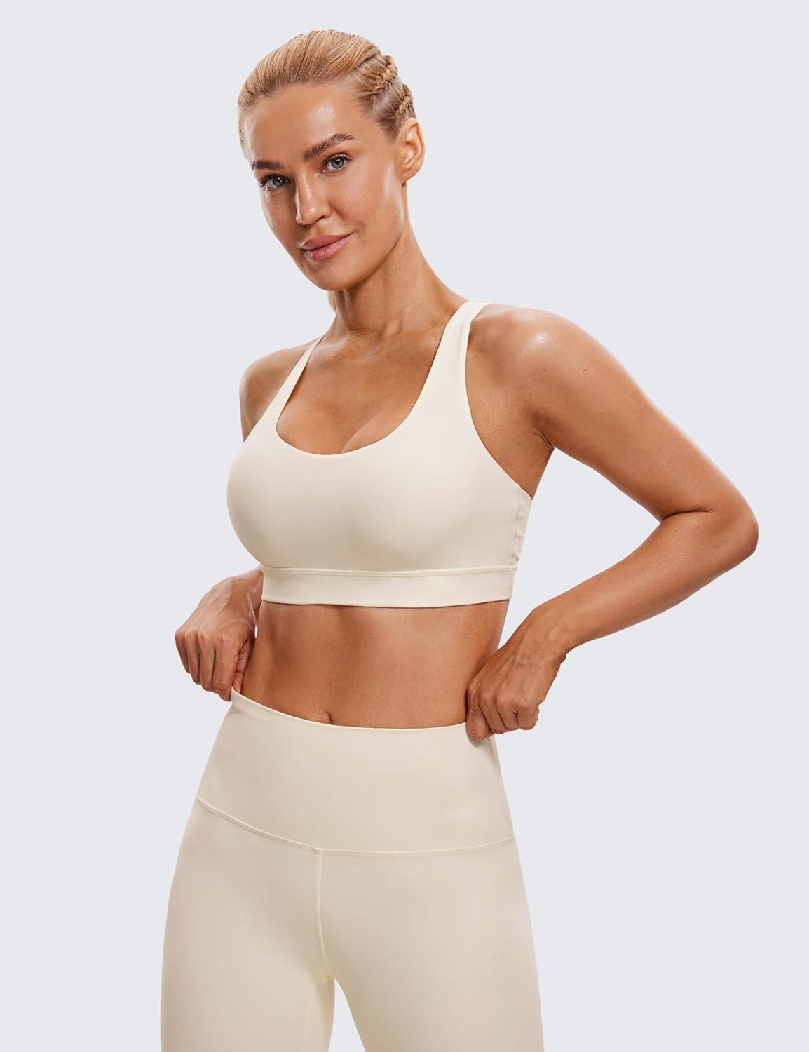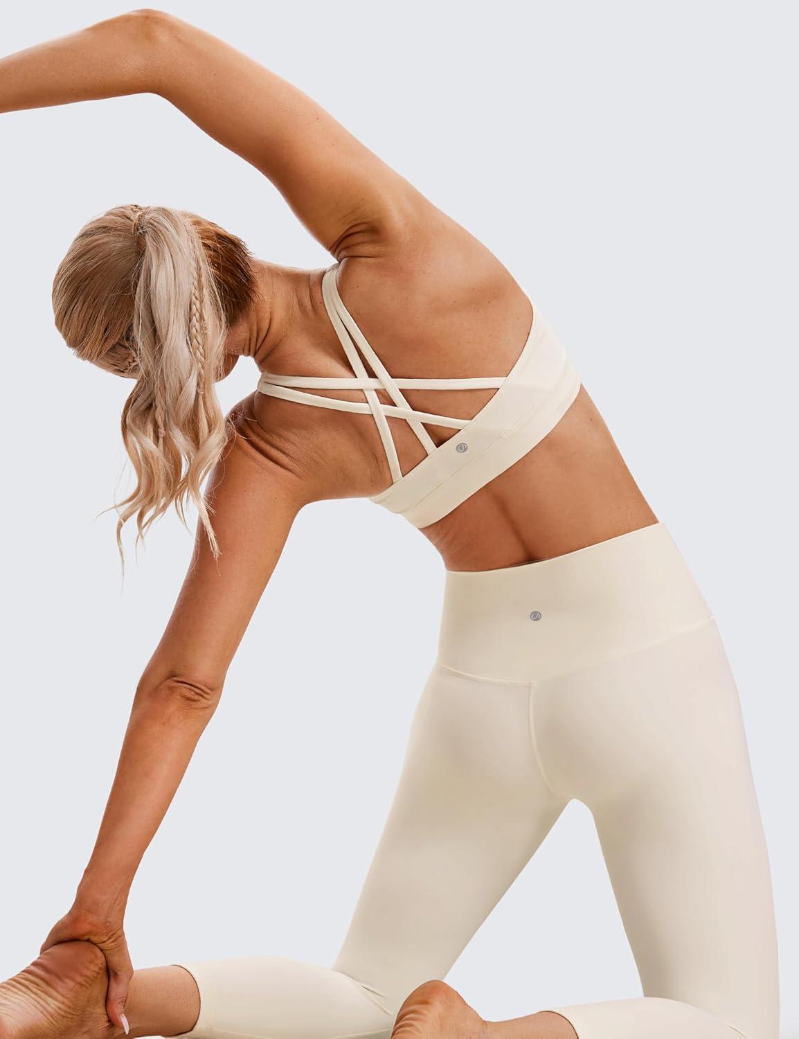 CRZ YOGA Naked Feeling Strappy Padded Sports Bras for Women – Fitness Workout Top Criss Cross Back Yoga Cami(White Apricot)