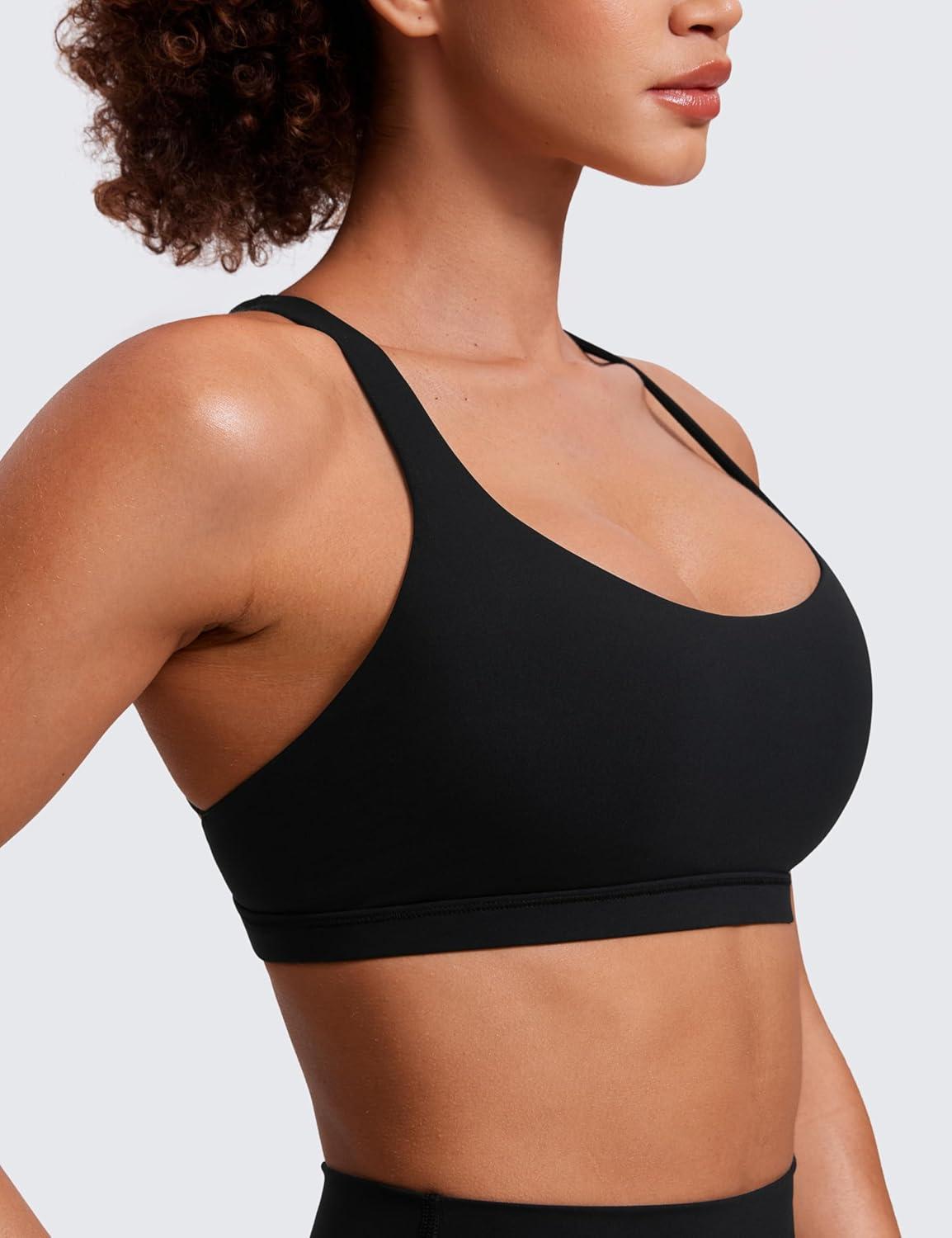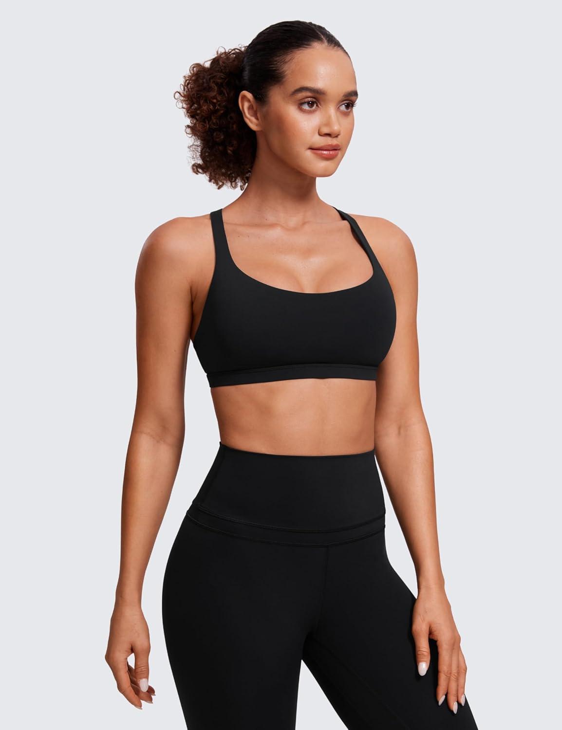 CRZ YOGA Naked Feeling Strappy Sports Bras for Women – Criss Cross Back Wireless Padded Cami Yoga Workout Top(Black)