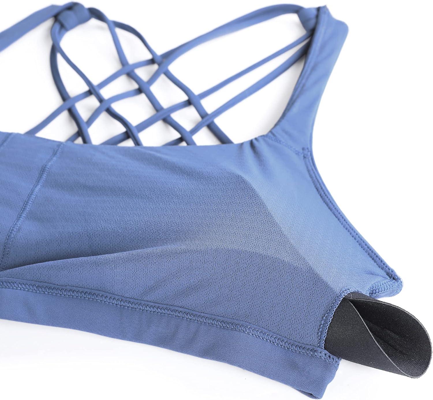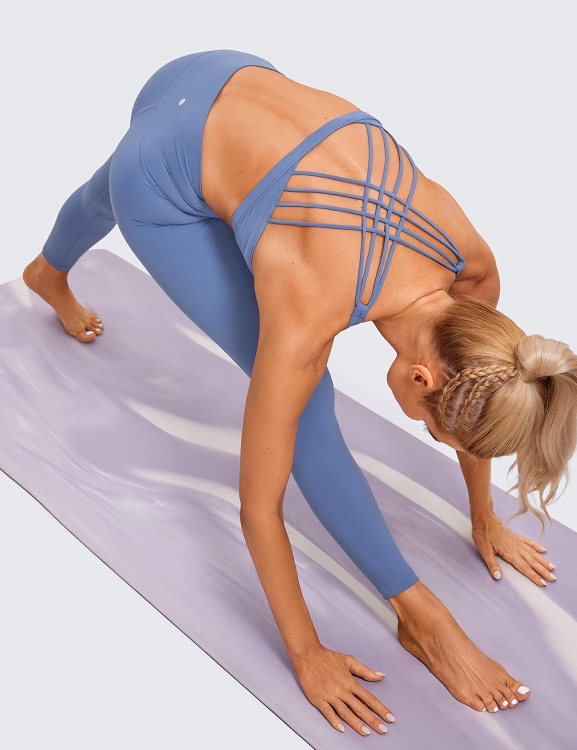 CRZ YOGA Naked Feeling Strappy Sports Bras for Women – Criss Cross Back Wireless Padded Cami Yoga Workout Top(Curtain Violet Ash)