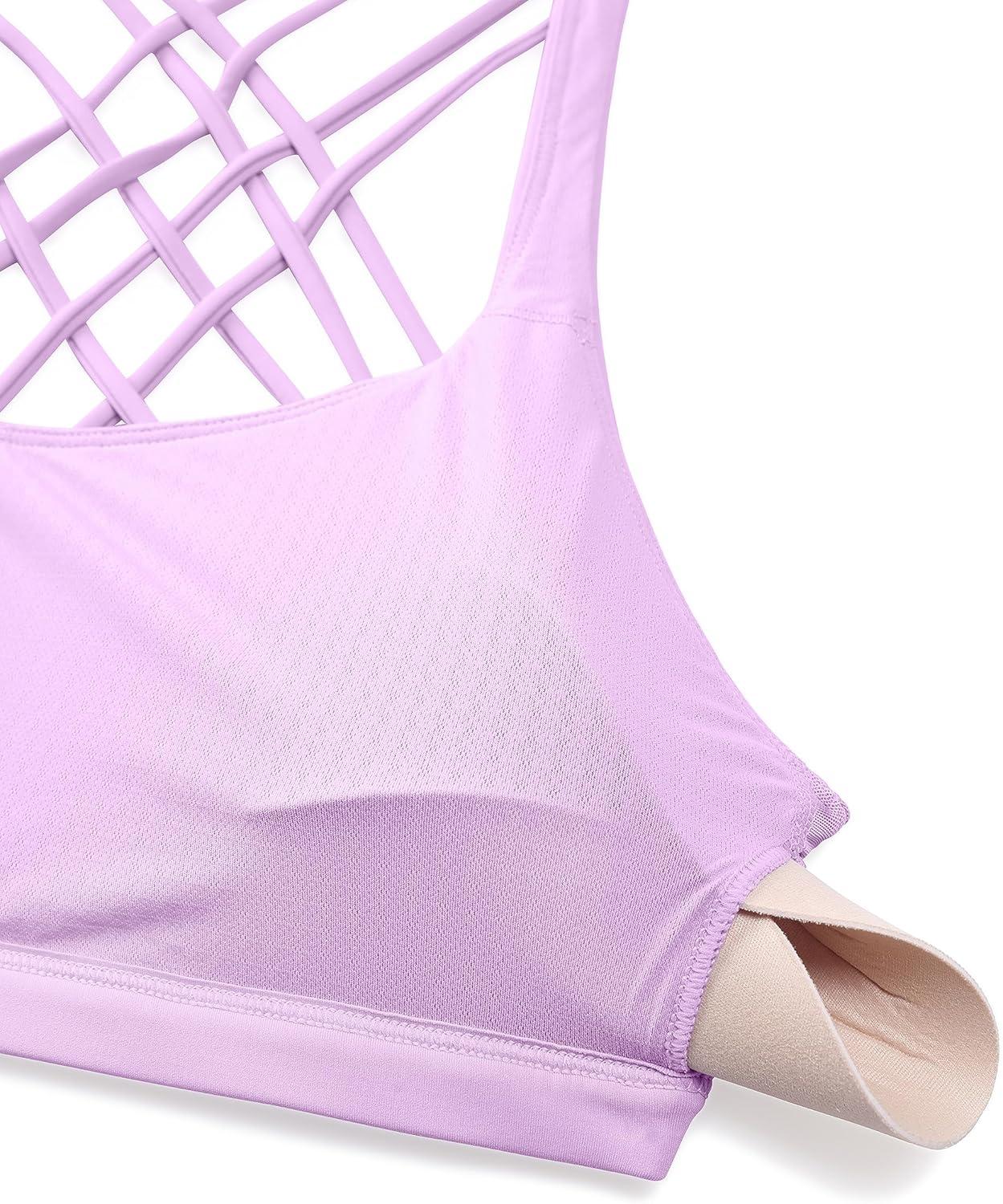 CRZ YOGA Naked Feeling Strappy Sports Bras for Women – Criss Cross Back Wireless Padded Cami Yoga Workout Top(Lilac)