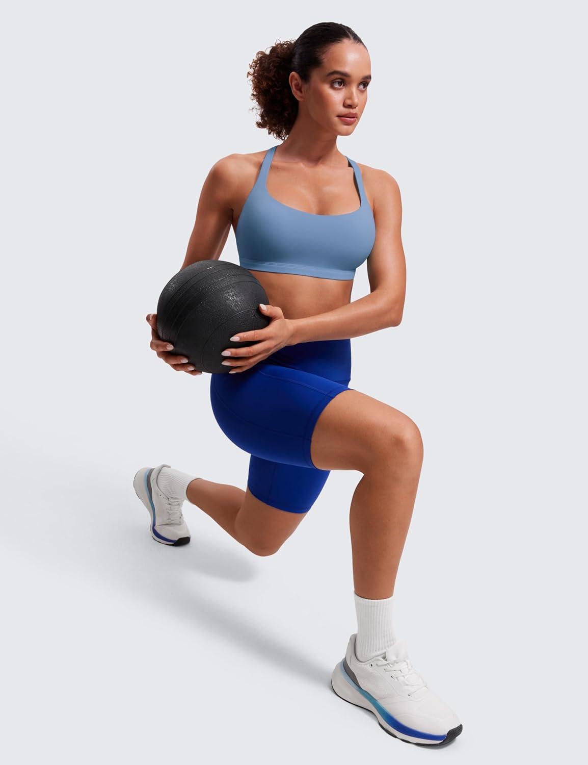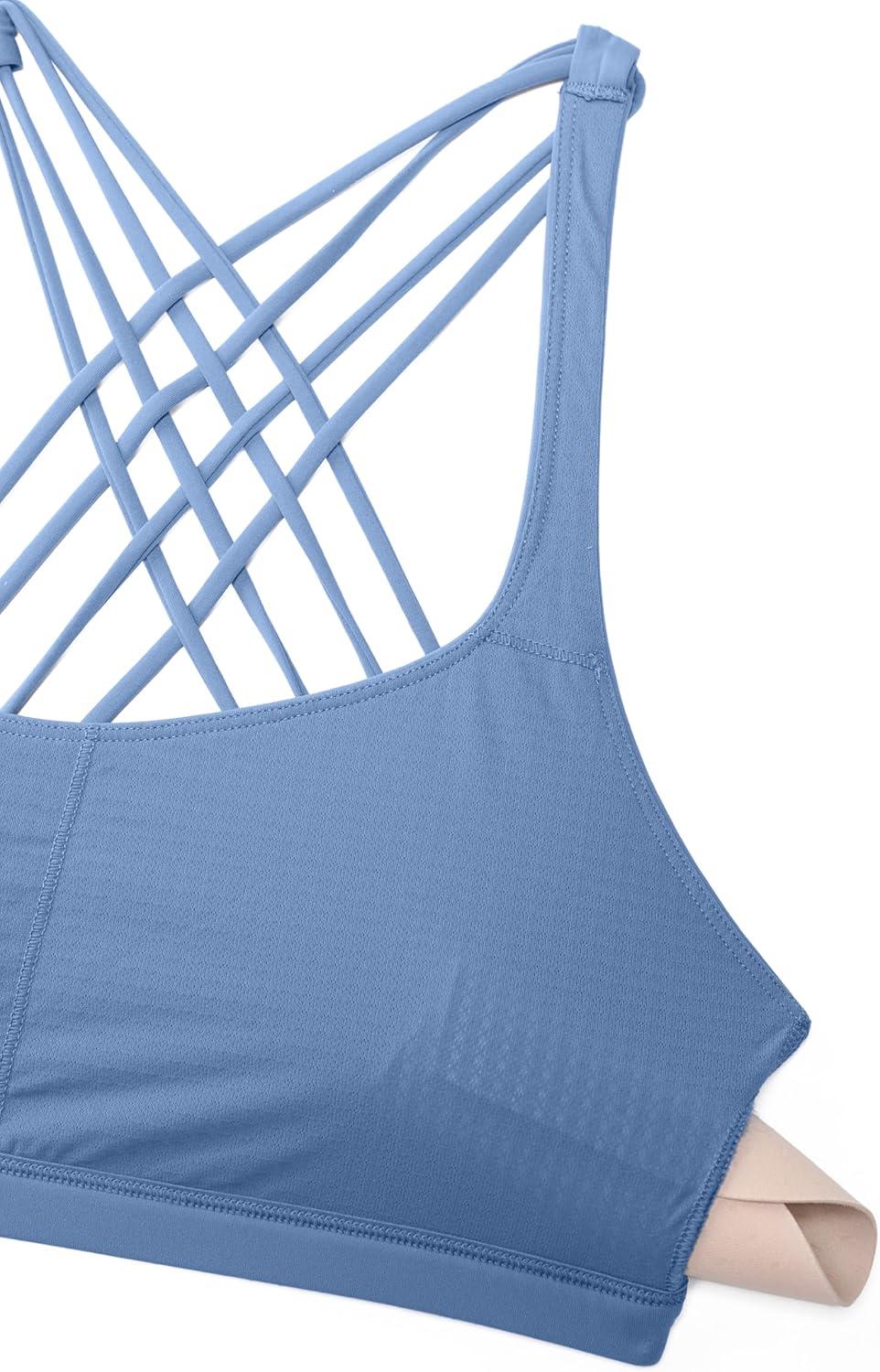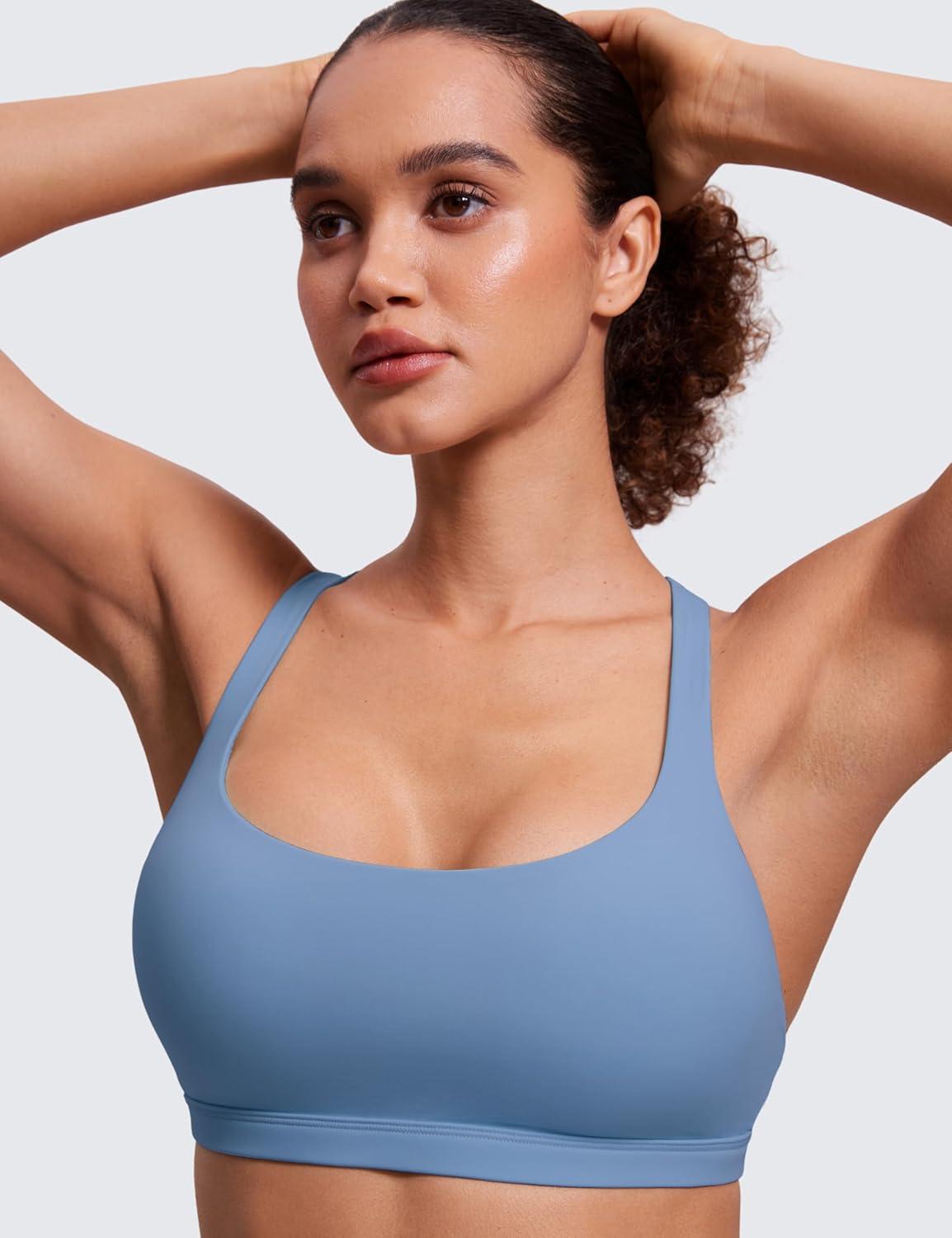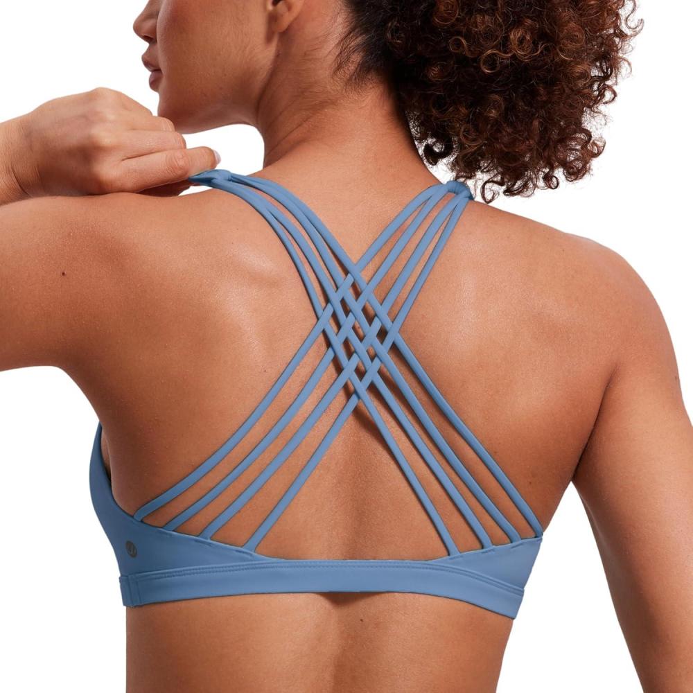CRZ YOGA Naked Feeling Strappy Sports Bras for Women – Criss Cross Back Wireless Padded Cami Yoga Workout Top(Oasis Blue)