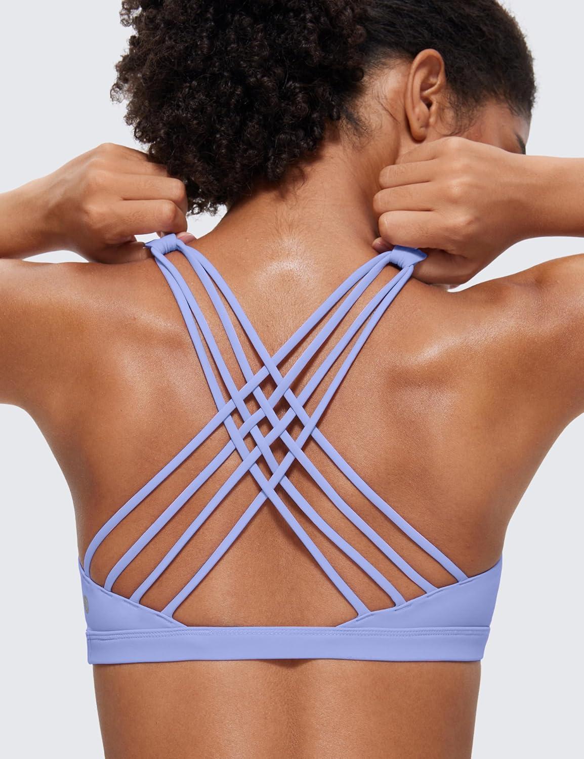 CRZ YOGA Naked Feeling Strappy Sports Bras for Women – Criss Cross Back Wireless Padded Cami Yoga Workout Top(Periwinkle Purple)