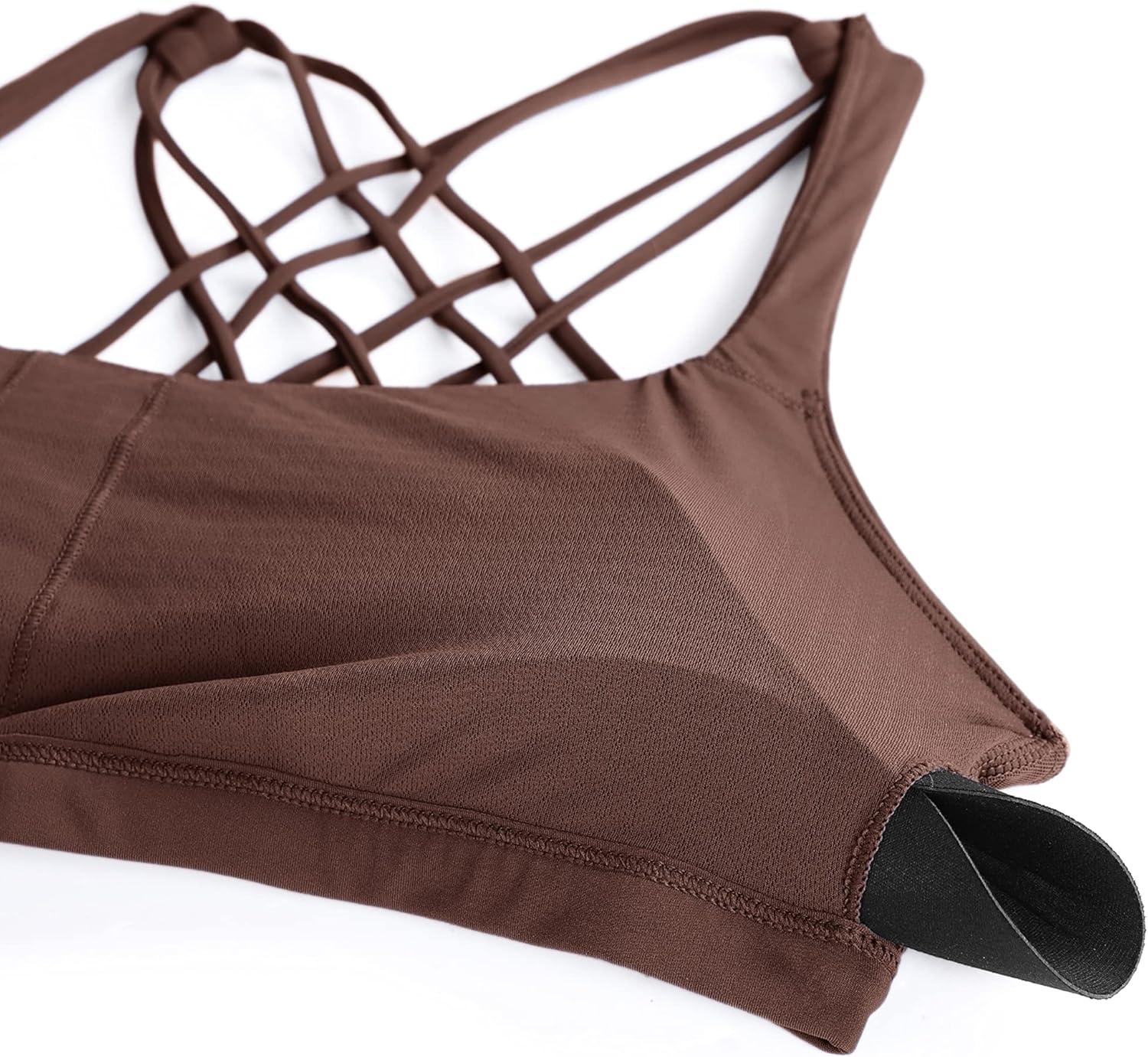 CRZ YOGA Naked Feeling Strappy Sports Bras for Women – Criss Cross Back Wireless Padded Cami Yoga Workout Top(Taupe)