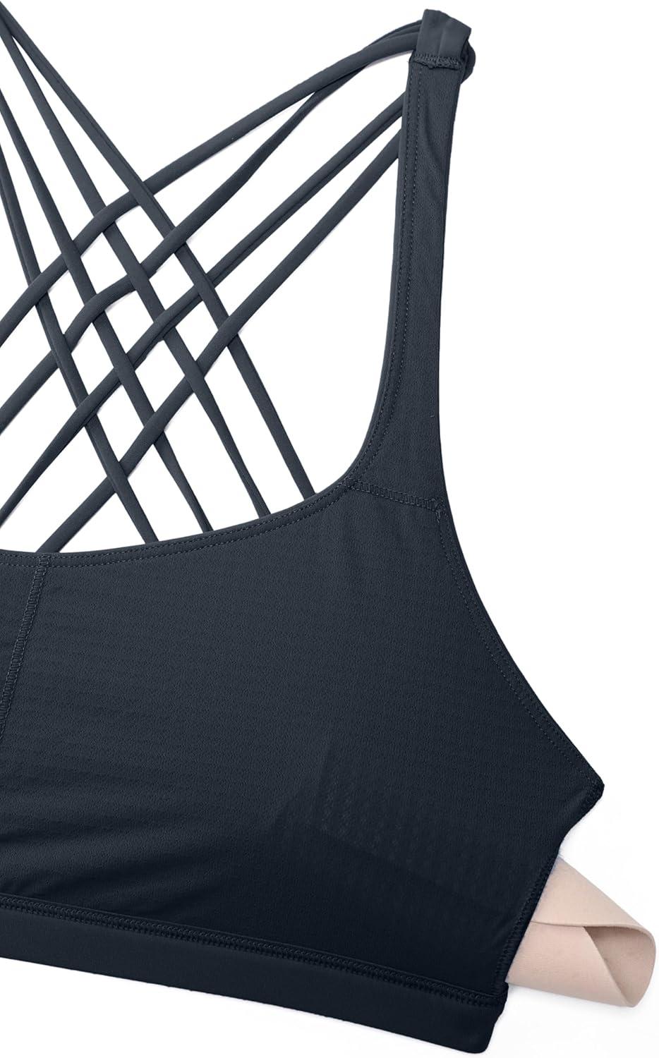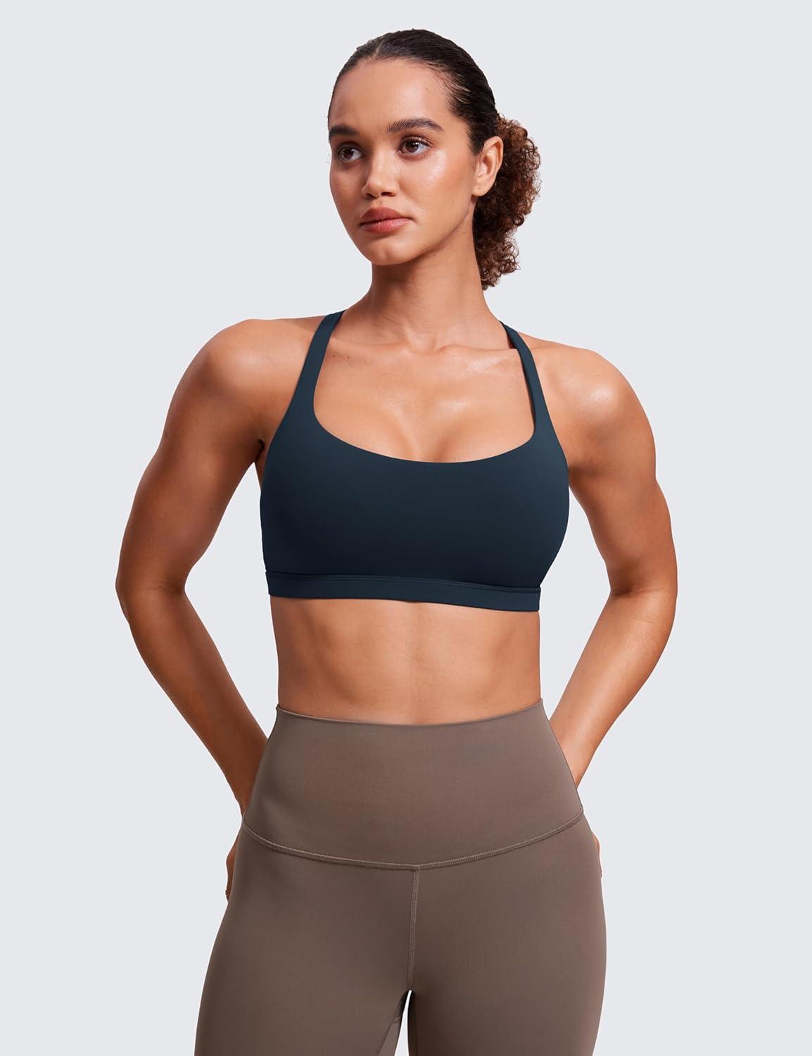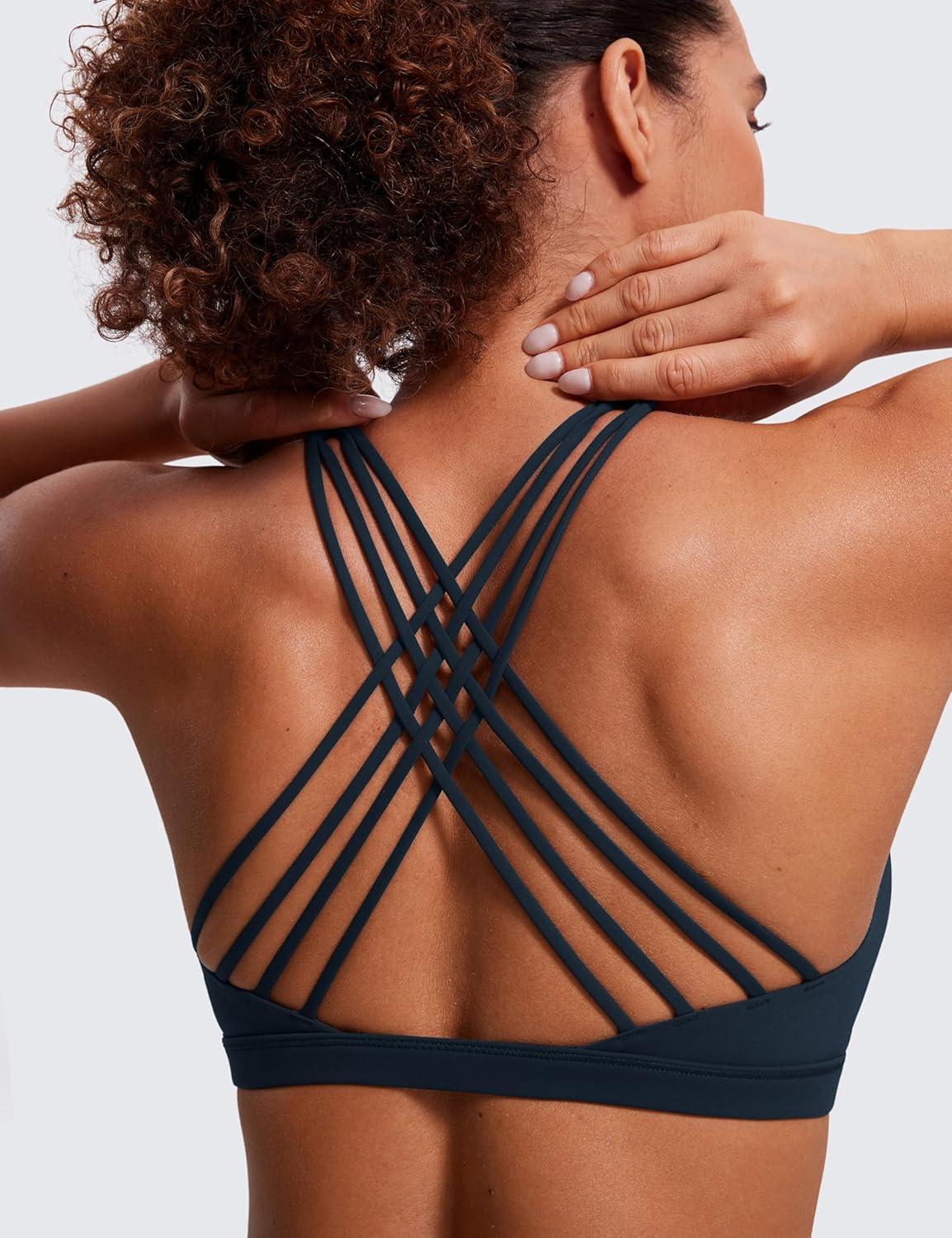 CRZ YOGA Naked Feeling Strappy Sports Bras for Women – Criss Cross Back Wireless Padded Cami Yoga Workout Top(True Navy)