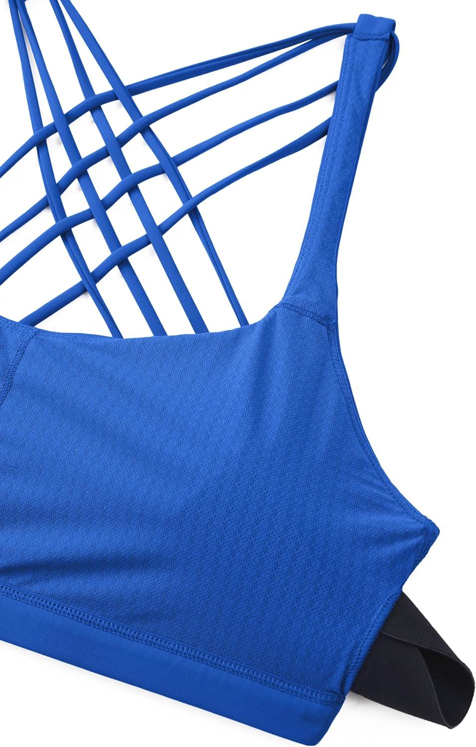 CRZ YOGA Naked Feeling Strappy Sports Bras for Women – Criss Cross Back Wireless Padded Cami Yoga Workout Top(Waves Blue)
