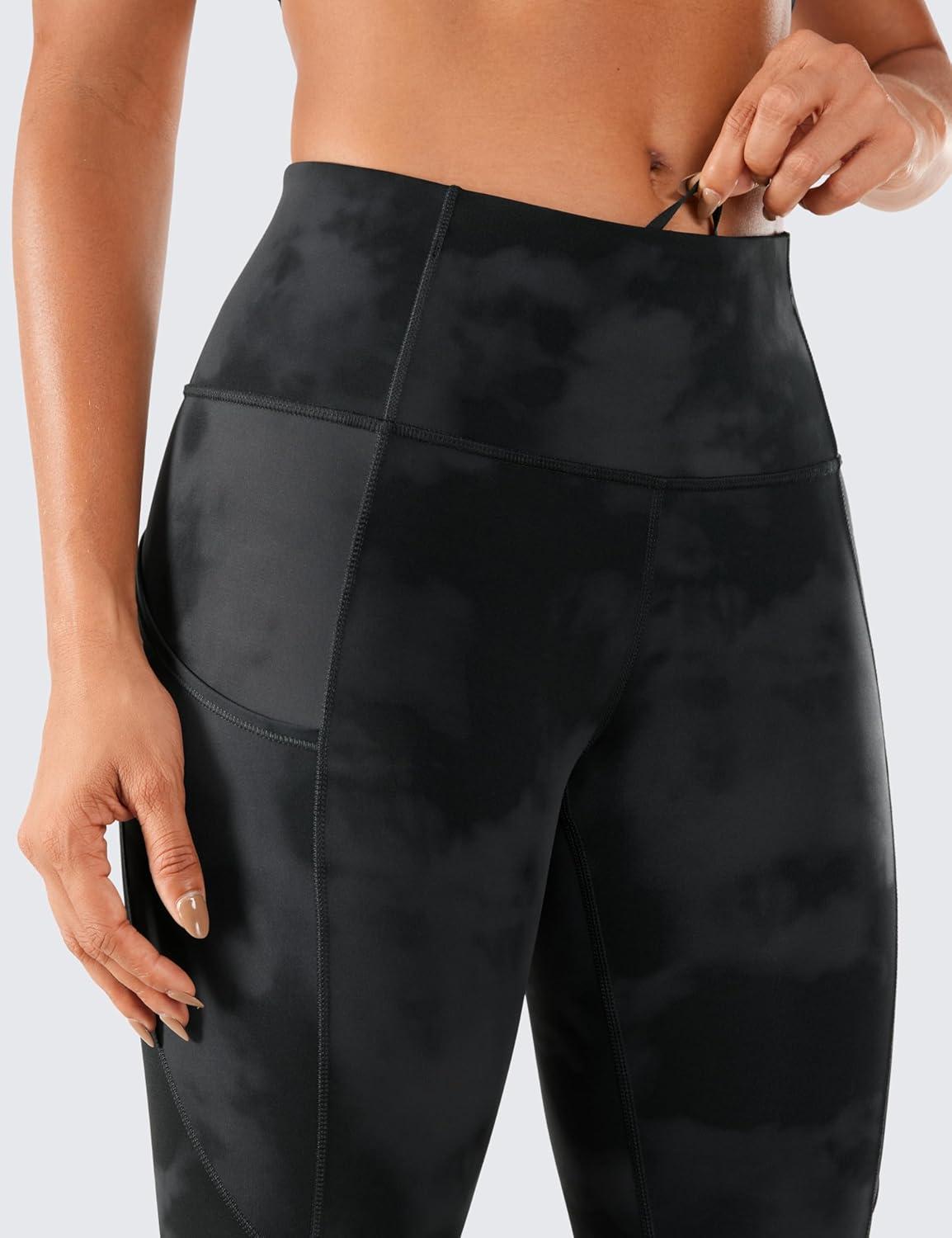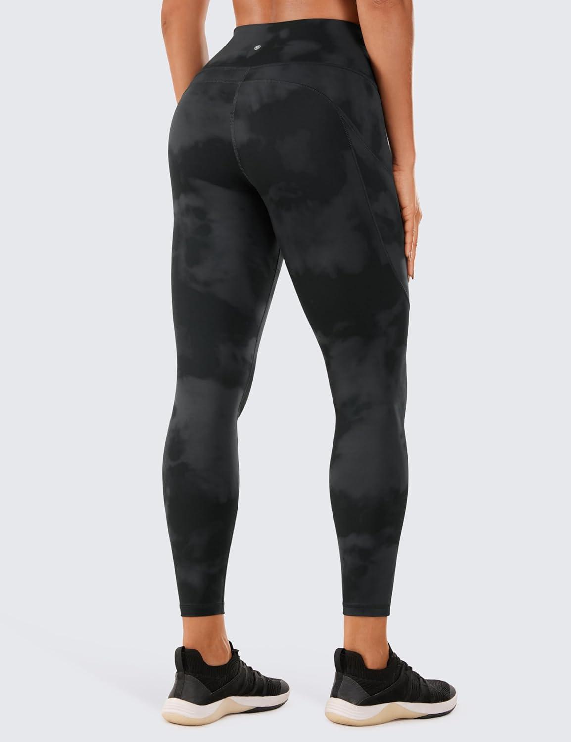 CRZ YOGA Naked Feeling Workout Leggings Pockets 25” – High Waisted Womens Yoga Pants Running Tights(Black Tie Dye Flowers)
