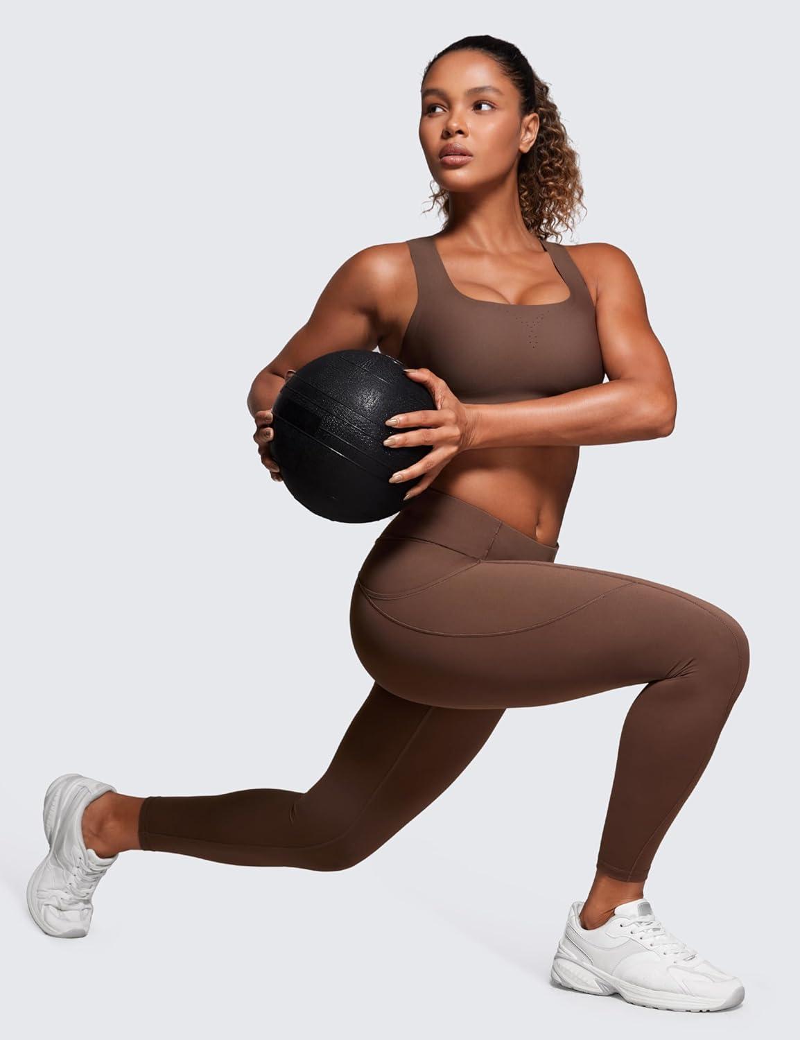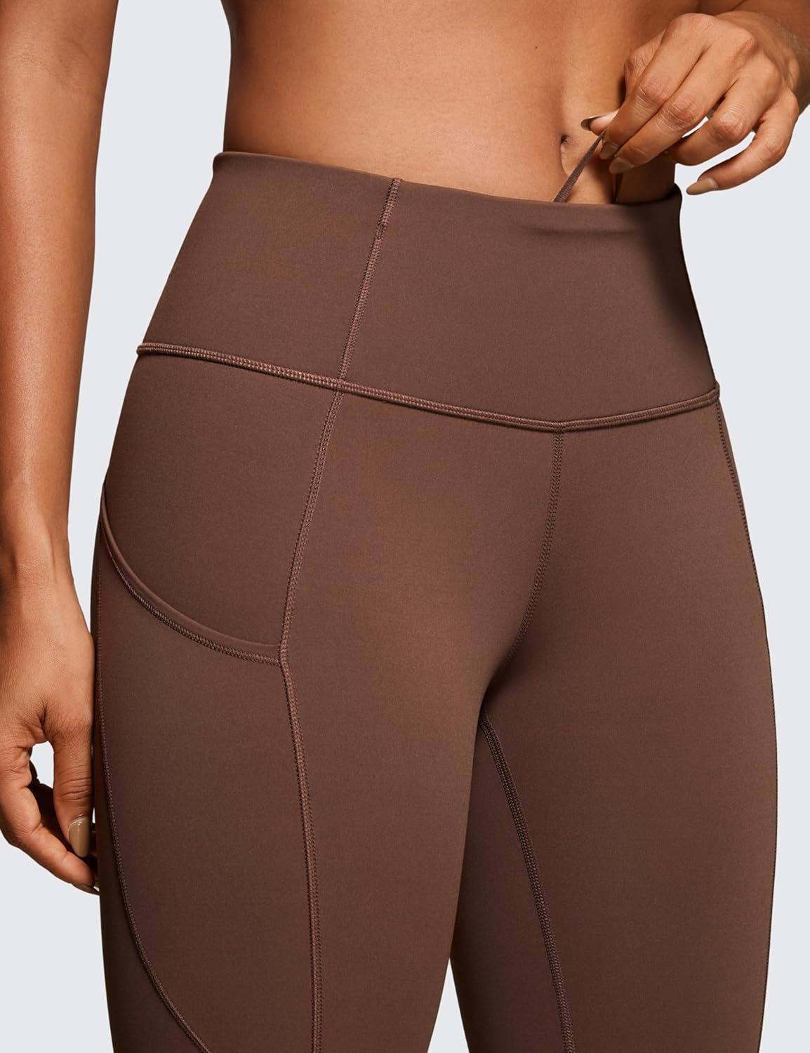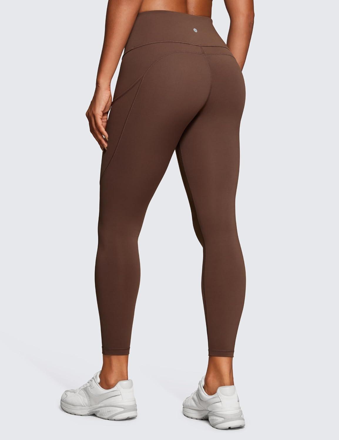 CRZ YOGA Naked Feeling Workout Leggings Pockets 25” – High Waisted Womens Yoga Pants Running Tights(Coffee Brown)