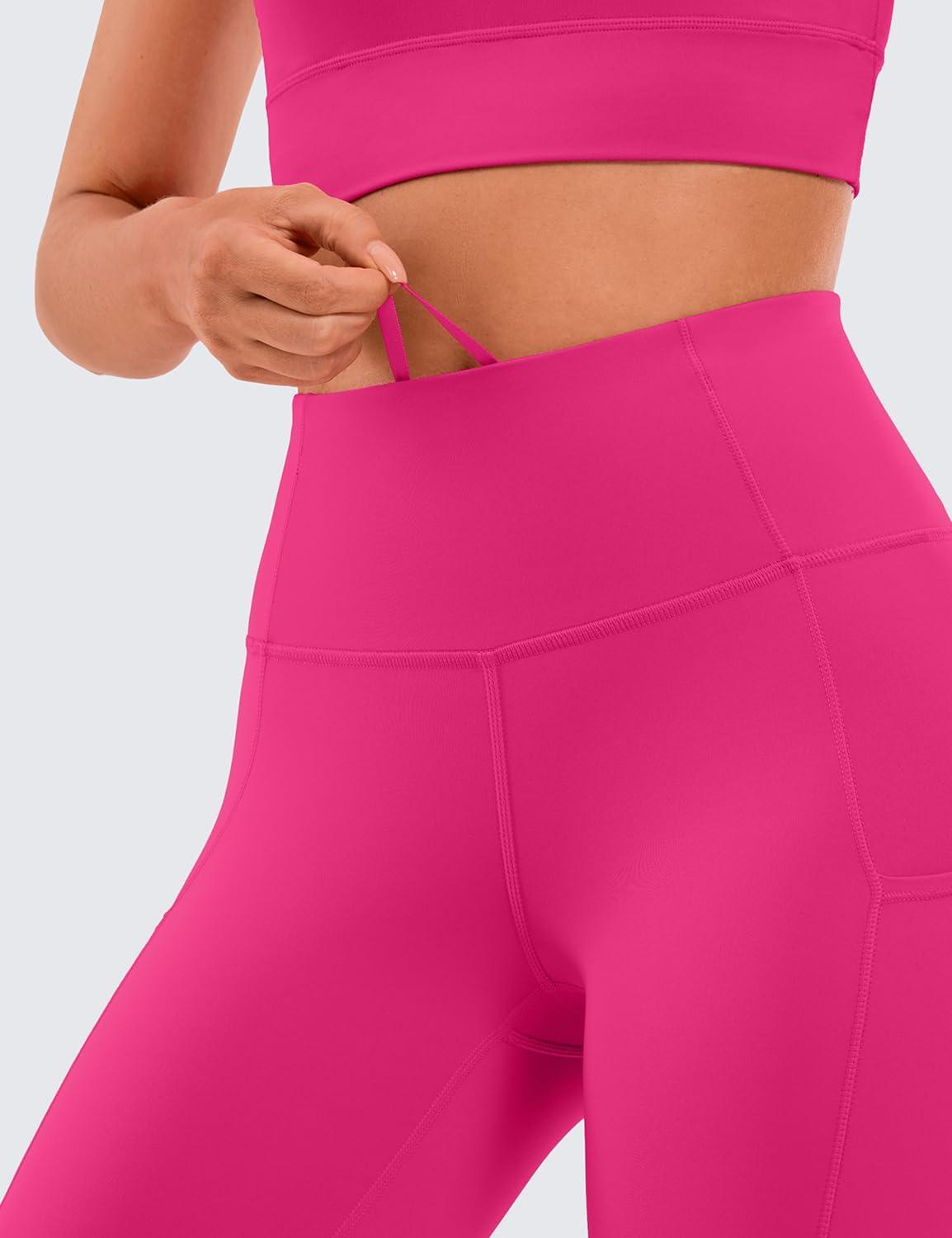 CRZ YOGA Naked Feeling Workout Leggings Pockets 25” – High Waisted Womens Yoga Pants Running Tights(Granita Pink)