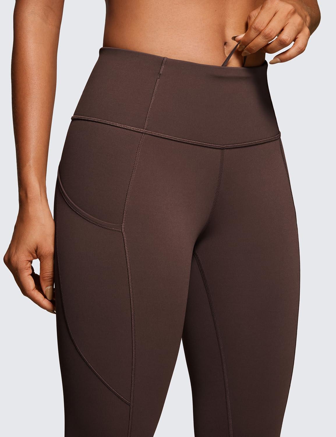 CRZ YOGA Naked Feeling Workout Leggings Pockets 25” – High Waisted Womens Yoga Pants Running Tights(Hot Fudge Brown)