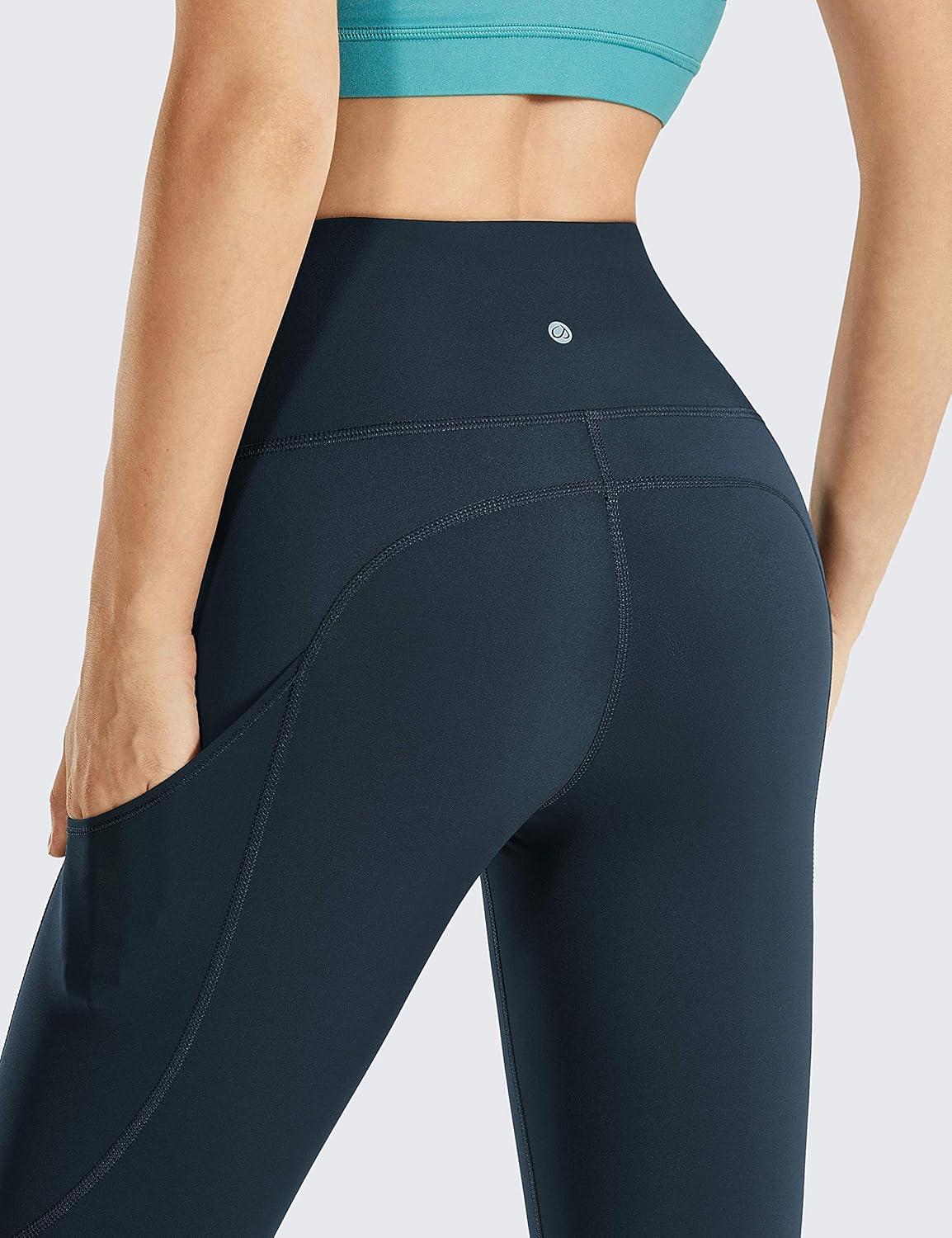 CRZ YOGA Naked Feeling Workout Leggings Pockets 25” – High Waisted Womens Yoga Pants Running Tights(True Navy)