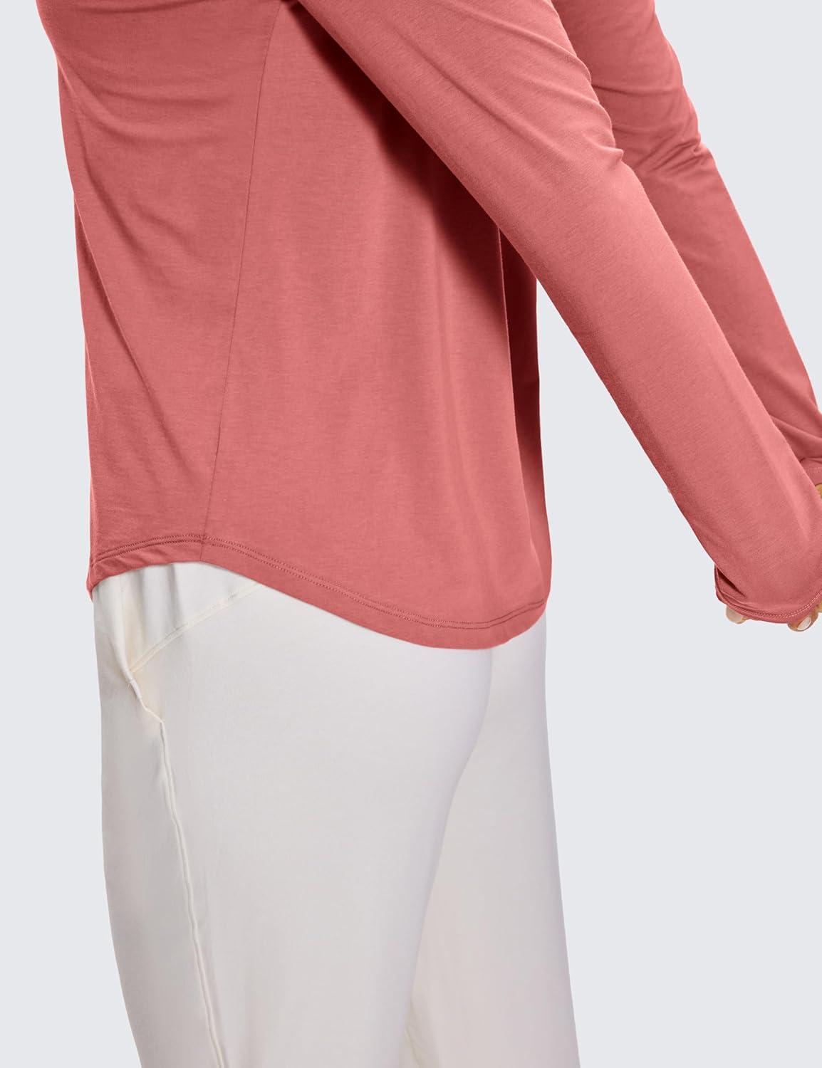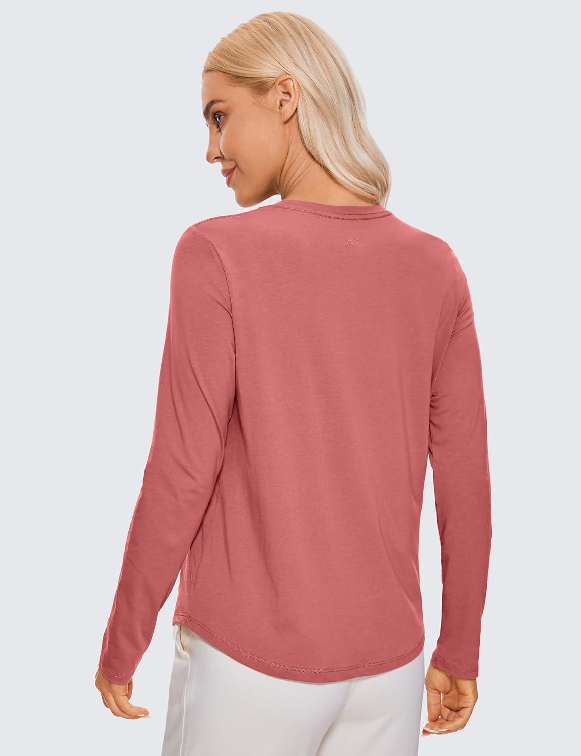 CRZ YOGA Pima Cotton Crewneck Long Sleeve Shirts for Women – Workout Athletic Yoga Casual Tops Soft Plain T-Shirt(Briar Rose)