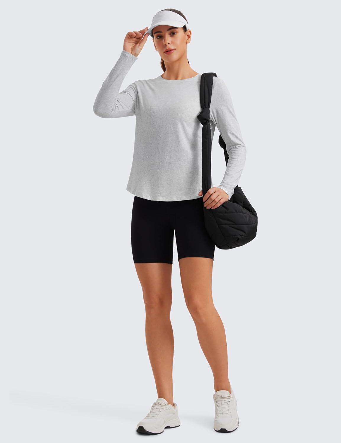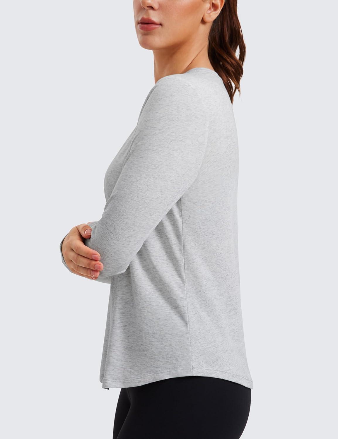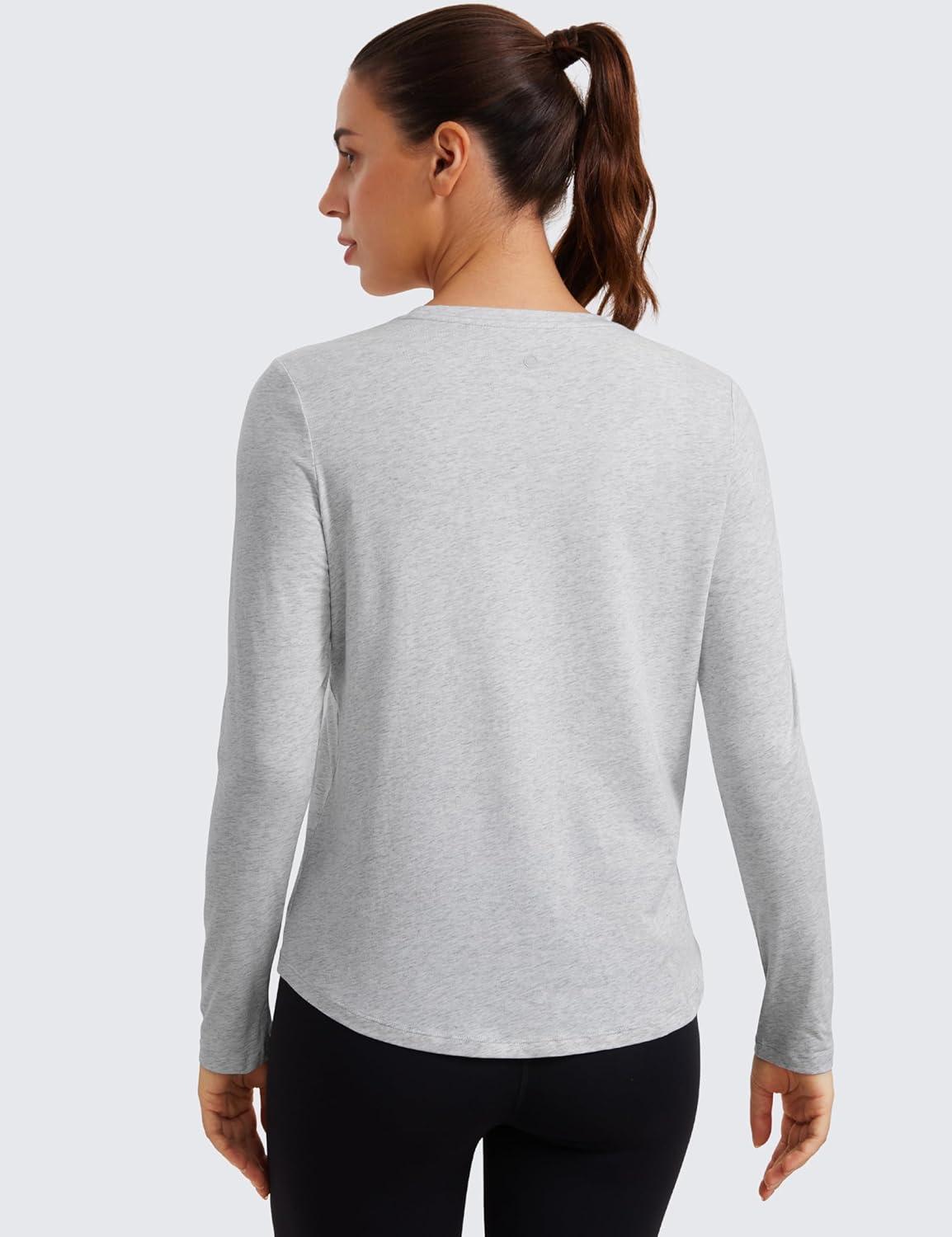 CRZ YOGA Pima Cotton Crewneck Long Sleeve Shirts for Women – Workout Athletic Yoga Casual Tops Soft Plain T-Shirt(Light Grey Heather)