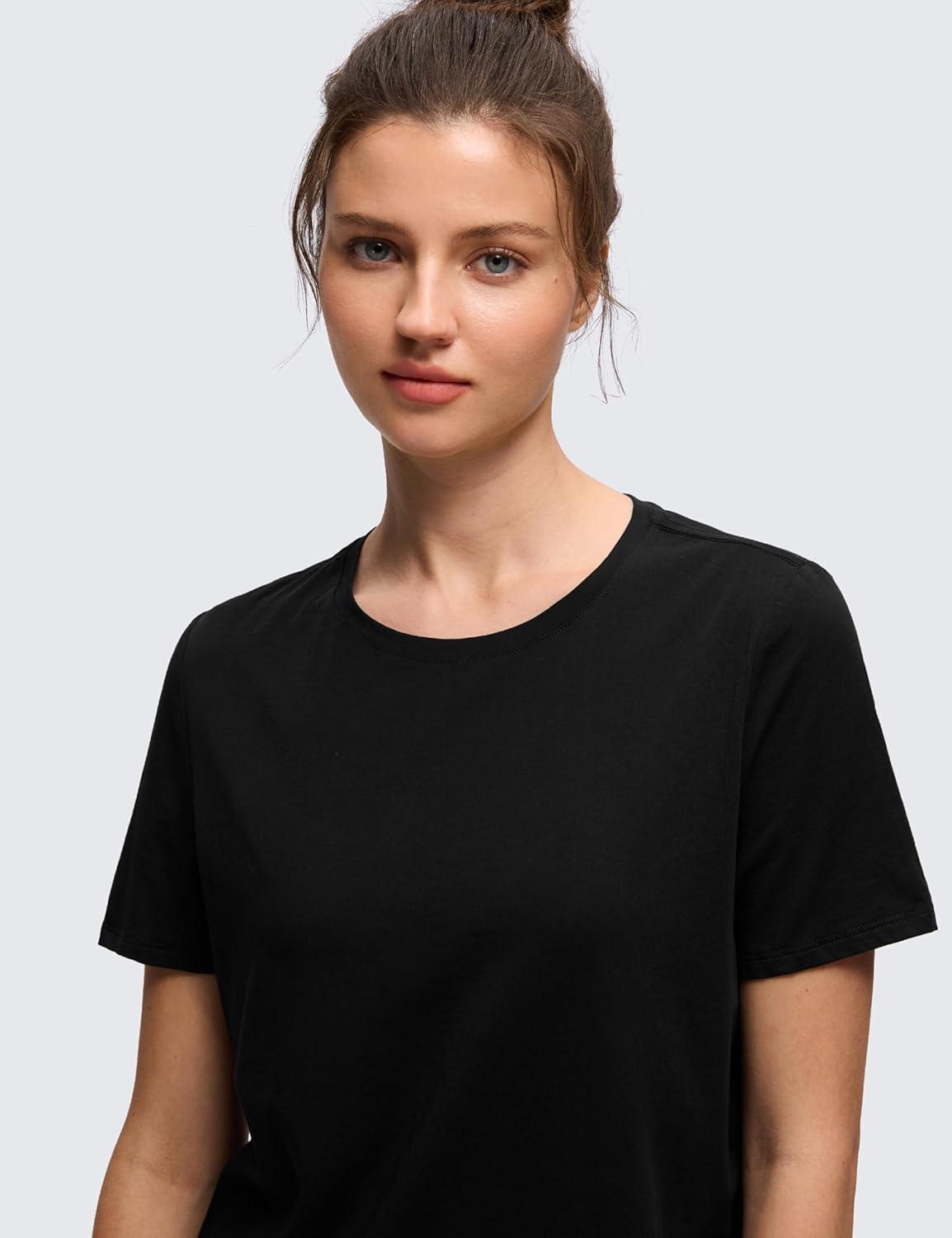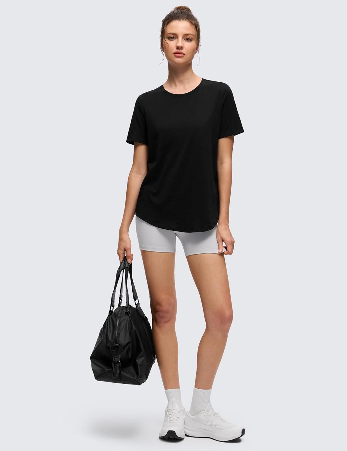 CRZ YOGA Pima Cotton Crewneck T-Shirts for Women – Workout Casual Yoga Athletic Short Sleeve Shirts Soft Crewneck Hip Tops(Black)