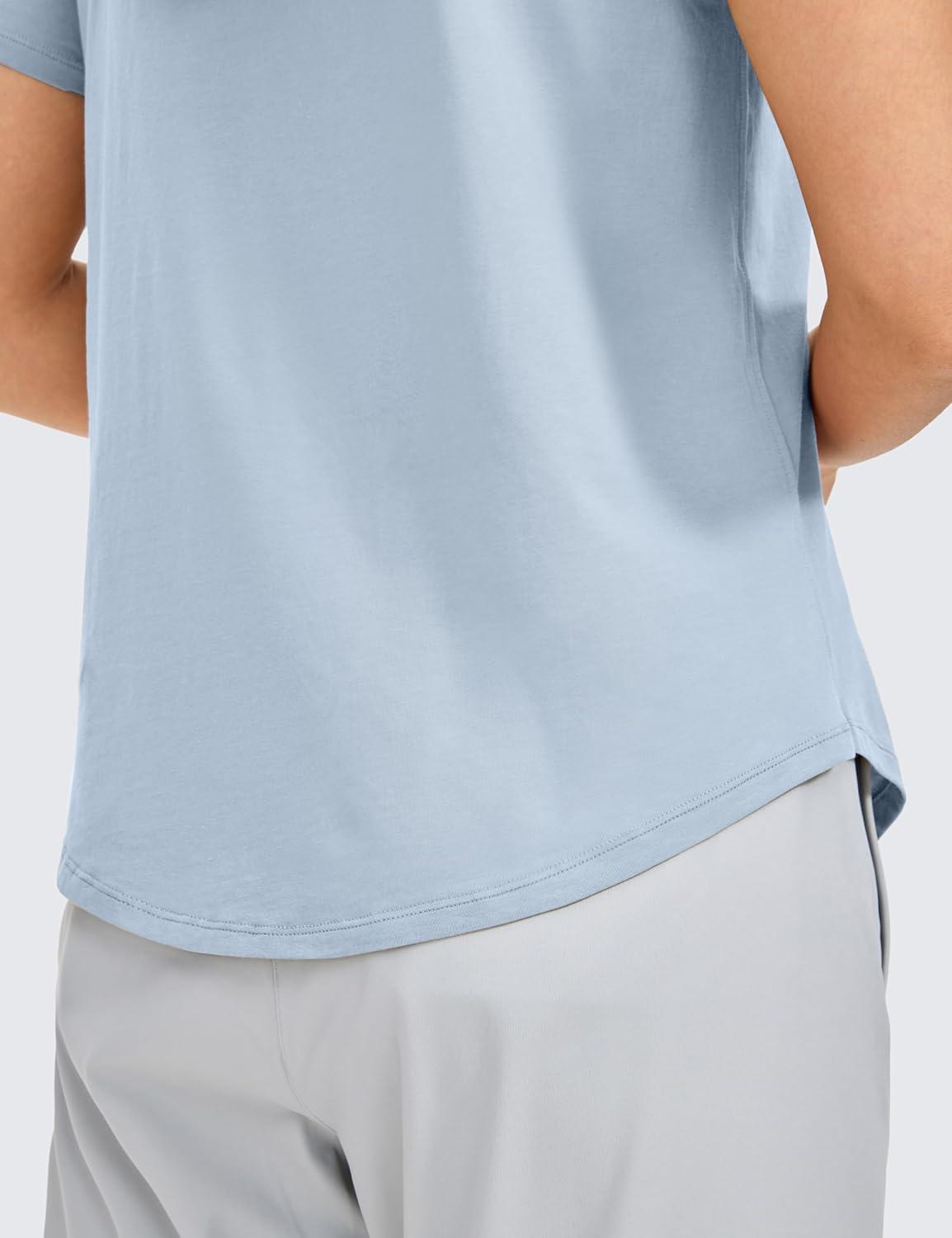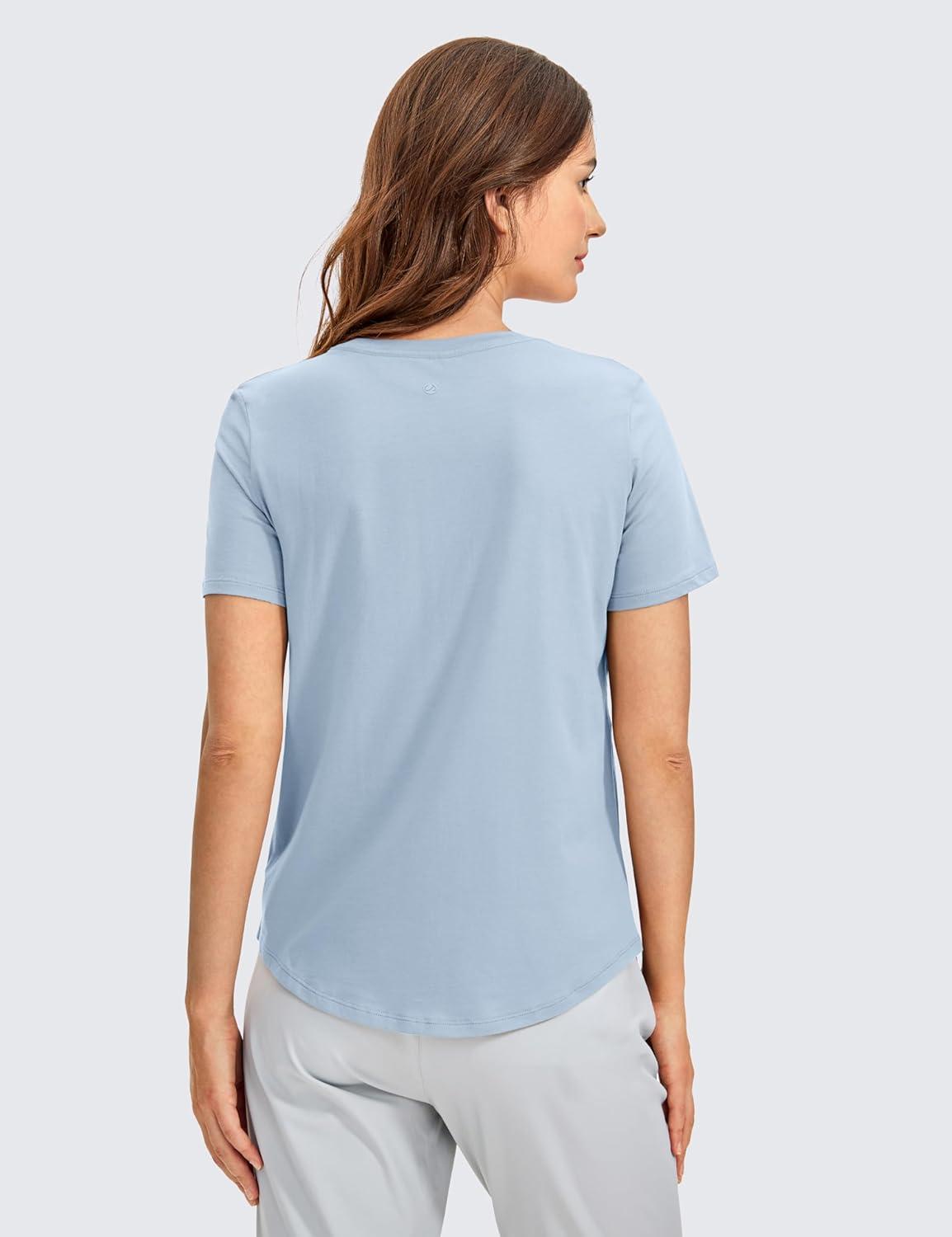 CRZ YOGA Pima Cotton Crewneck T-Shirts for Women – Workout Casual Yoga Athletic Short Sleeve Shirts Soft Crewneck Hip Tops(Blue Linen)