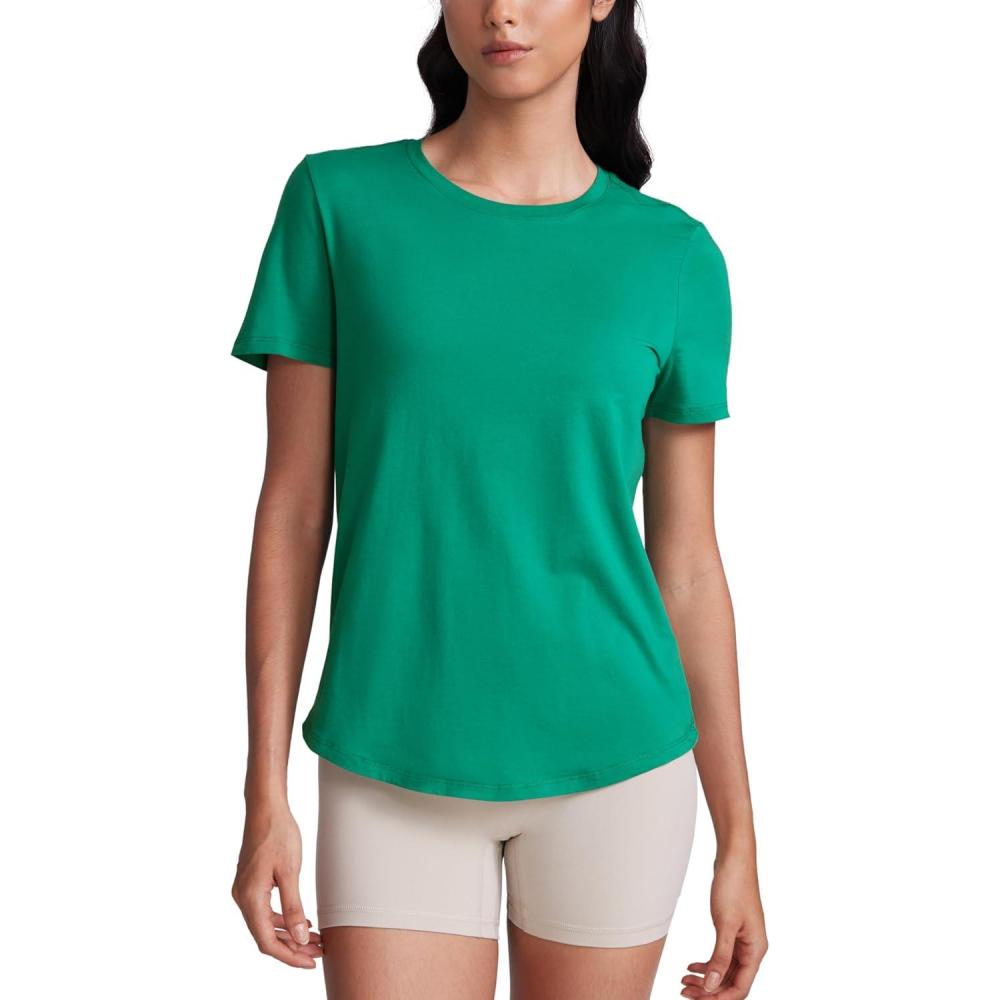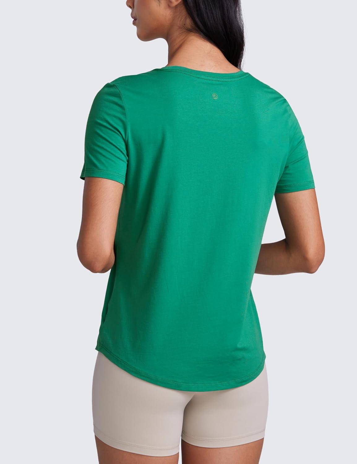 CRZ YOGA Pima Cotton Crewneck T-Shirts for Women – Workout Casual Yoga Athletic Short Sleeve Shirts Soft Crewneck Hip Tops(Cascadia Green)