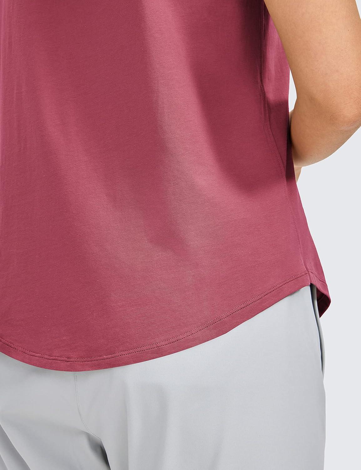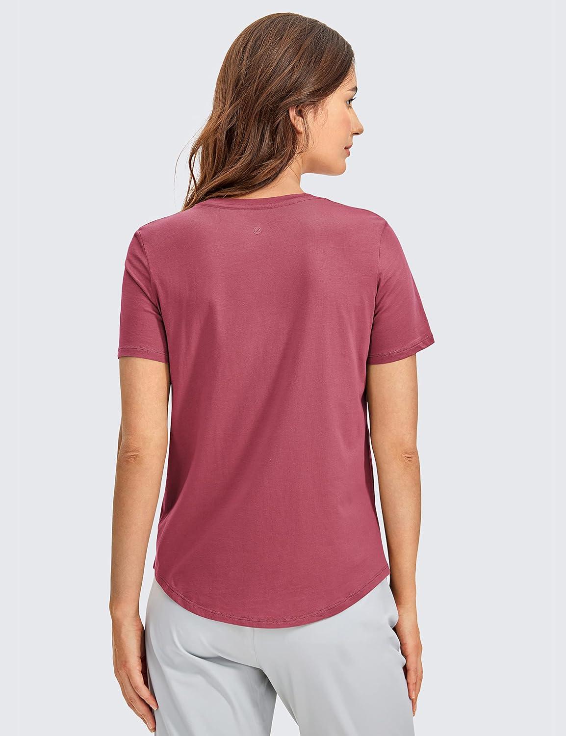 CRZ YOGA Pima Cotton Crewneck T-Shirts for Women – Workout Casual Yoga Athletic Short Sleeve Shirts Soft Crewneck Hip Tops(Misty Merlot)