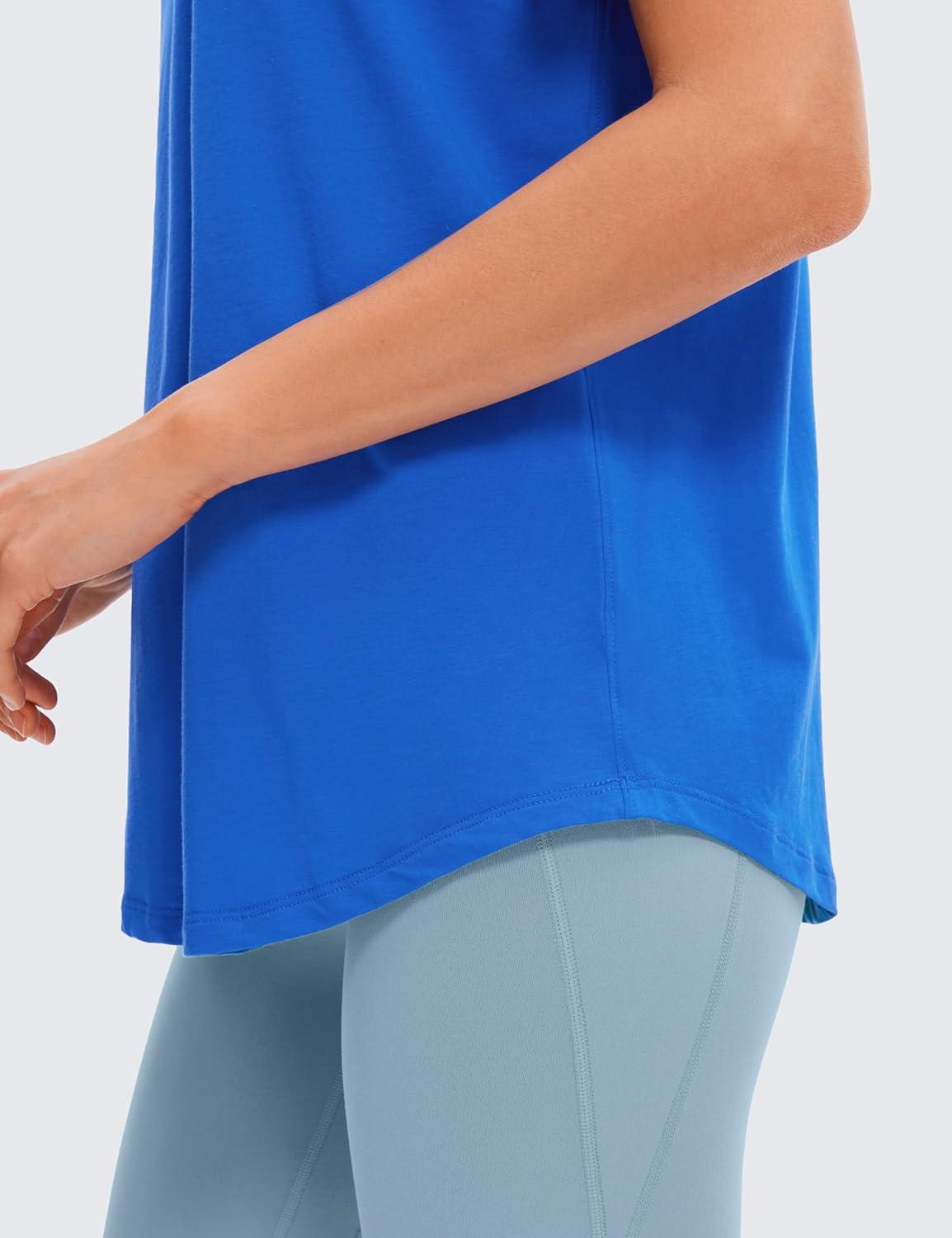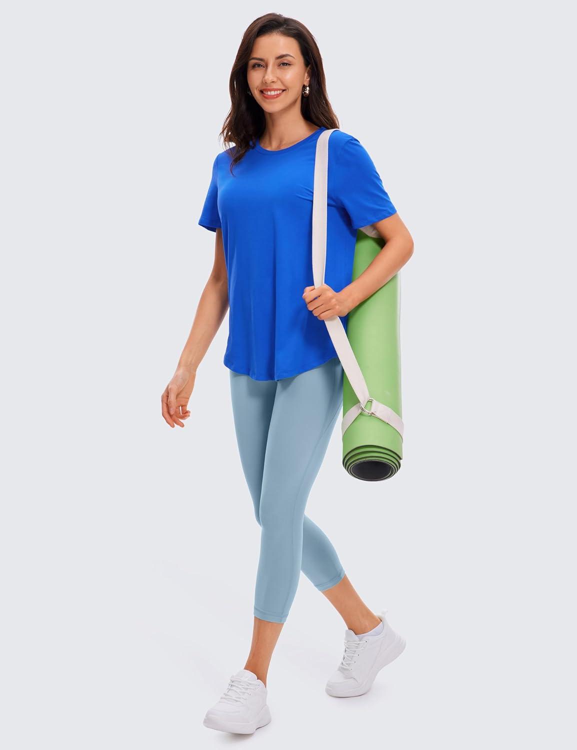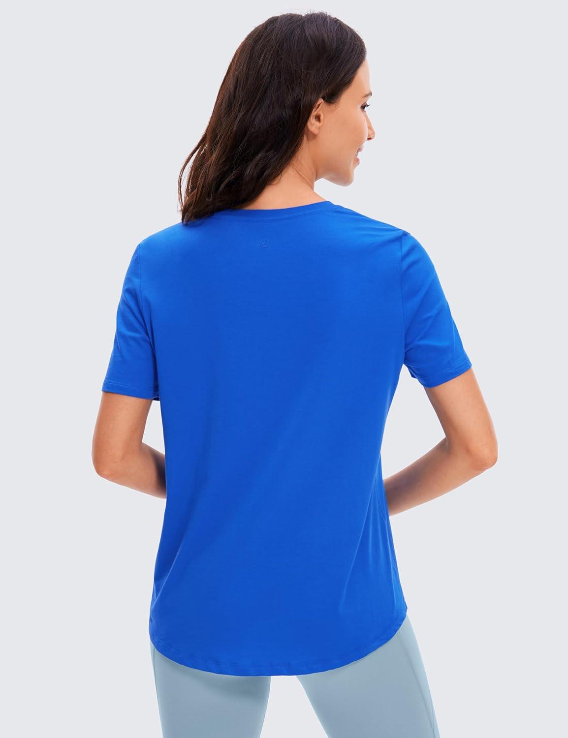 CRZ YOGA Pima Cotton Crewneck T-Shirts for Women – Workout Casual Yoga Athletic Short Sleeve Shirts Soft Crewneck Hip Tops(Strong Blue)