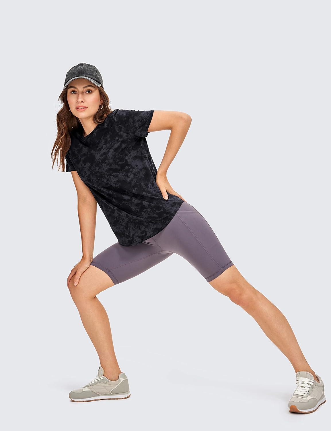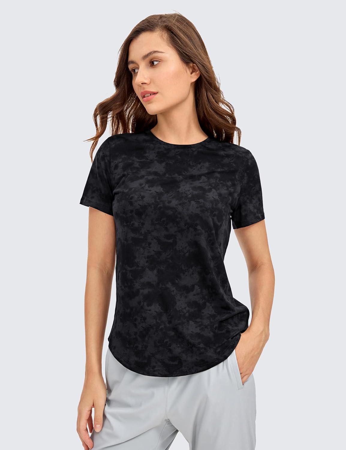 CRZ YOGA Pima Cotton Crewneck T-Shirts for Women – Workout Casual Yoga Athletic Short Sleeve Shirts Soft Crewneck Hip Tops(Tie Dye Smoke Ink)