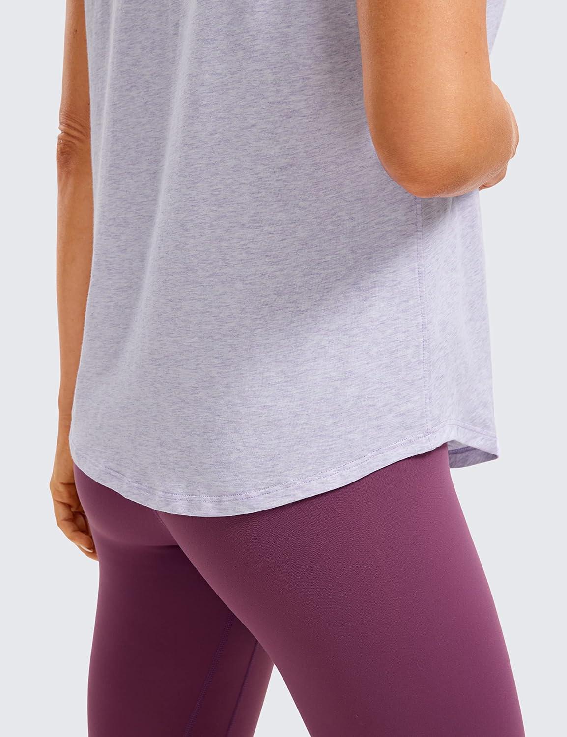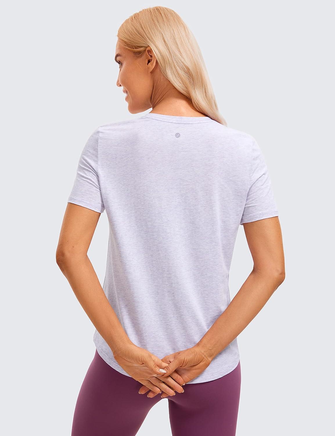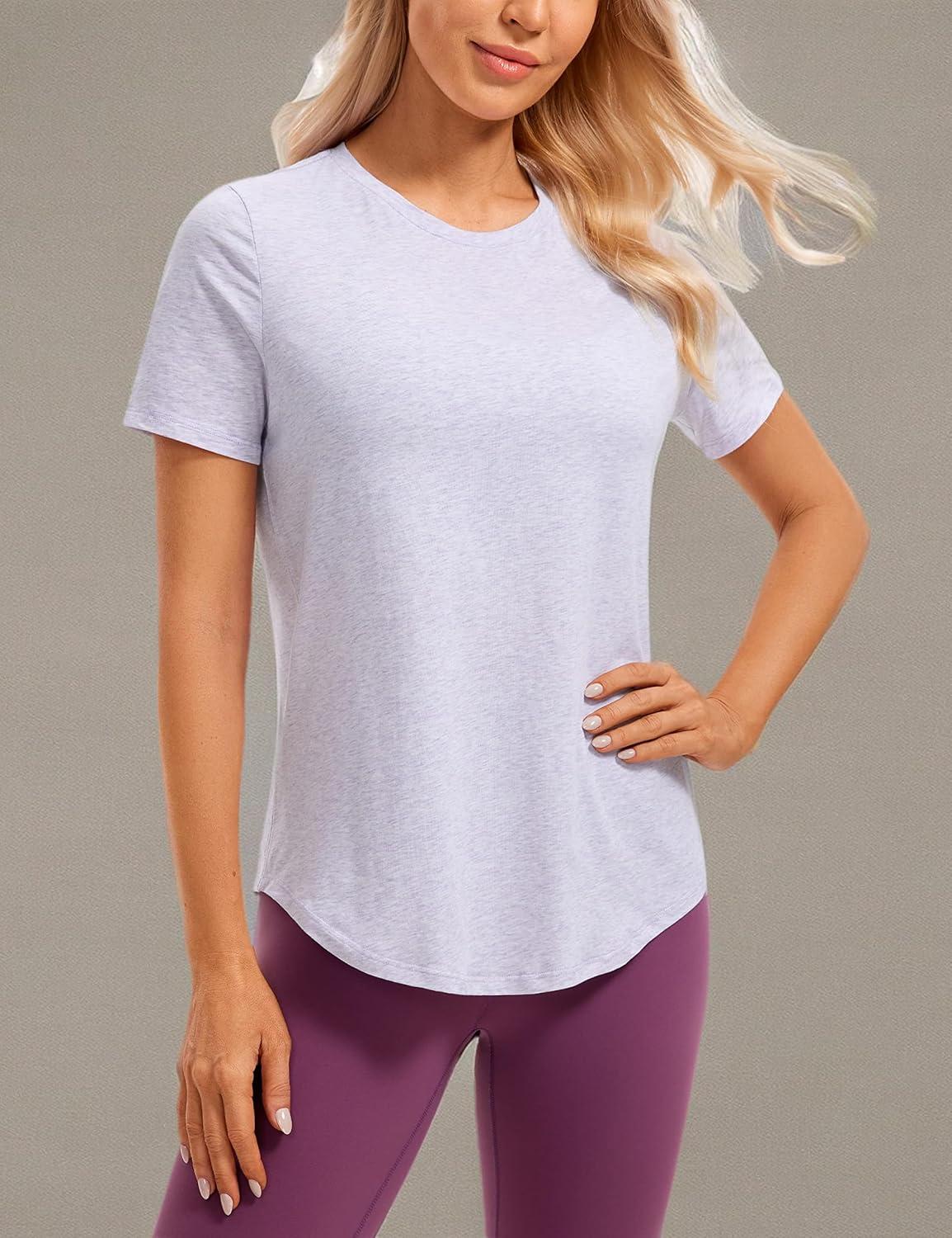 CRZ YOGA Pima Cotton Crewneck T-Shirts for Women – Workout Casual Yoga Athletic Short Sleeve Shirts Soft Crewneck Hip Tops(Violet Ash)