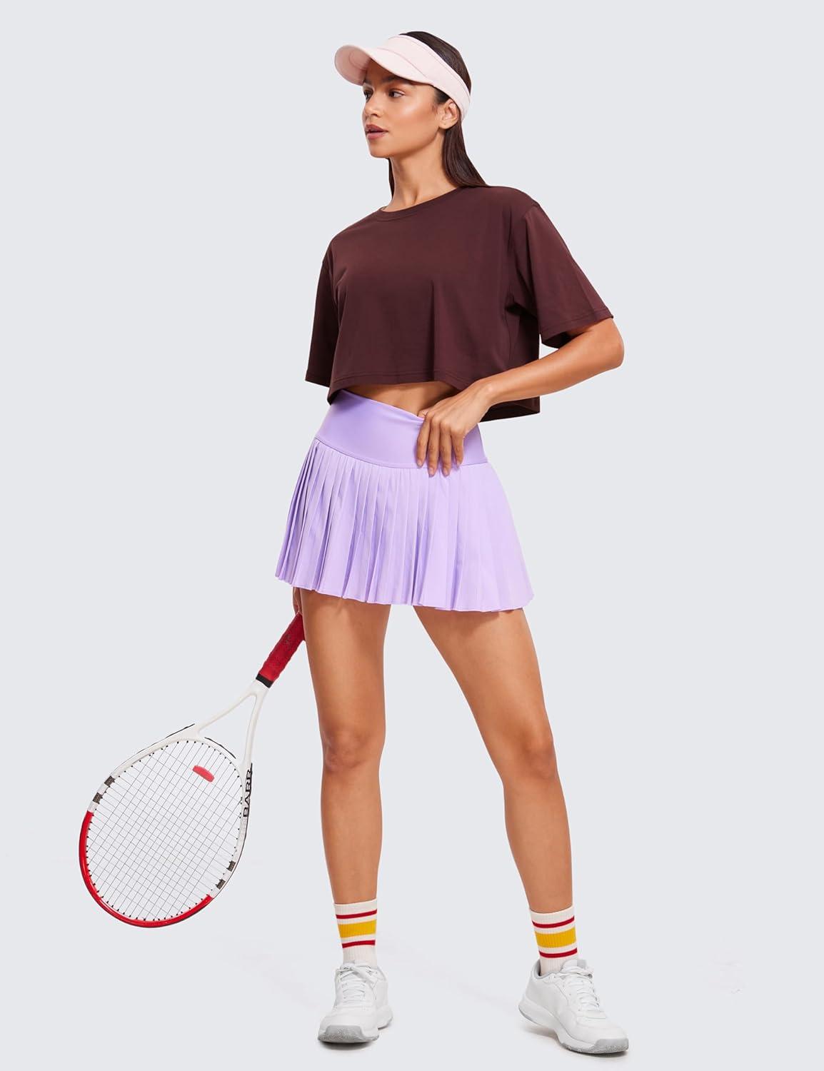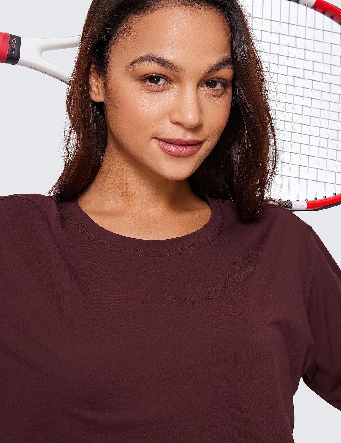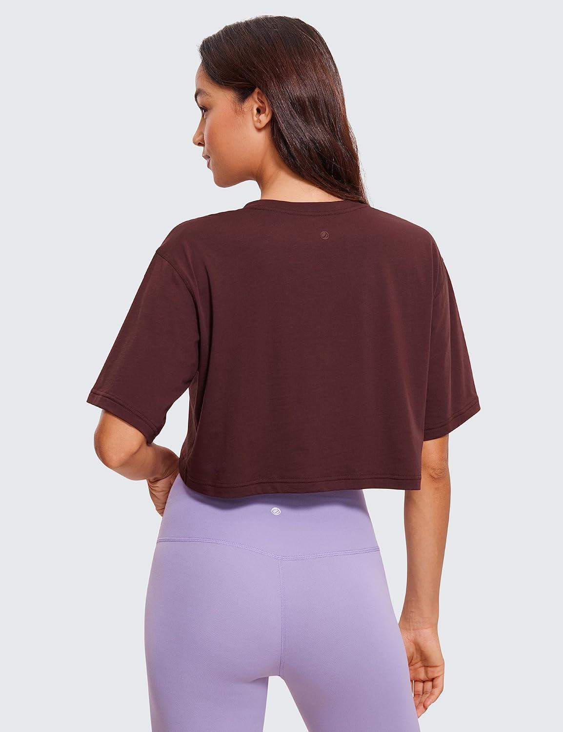 CRZ YOGA Pima Cotton Loose Crop T-Shirts for Women – Workout Yoga Casual Athletic Running Short Sleeve Shirts Crewneck Tops(Dark Red)