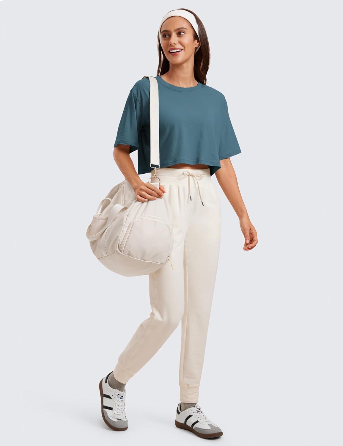 CRZ YOGA Pima Cotton Loose Crop T-Shirts for Women – Workout Yoga Casual Athletic Running Short Sleeve Shirts Crewneck Tops(Slate Blue)