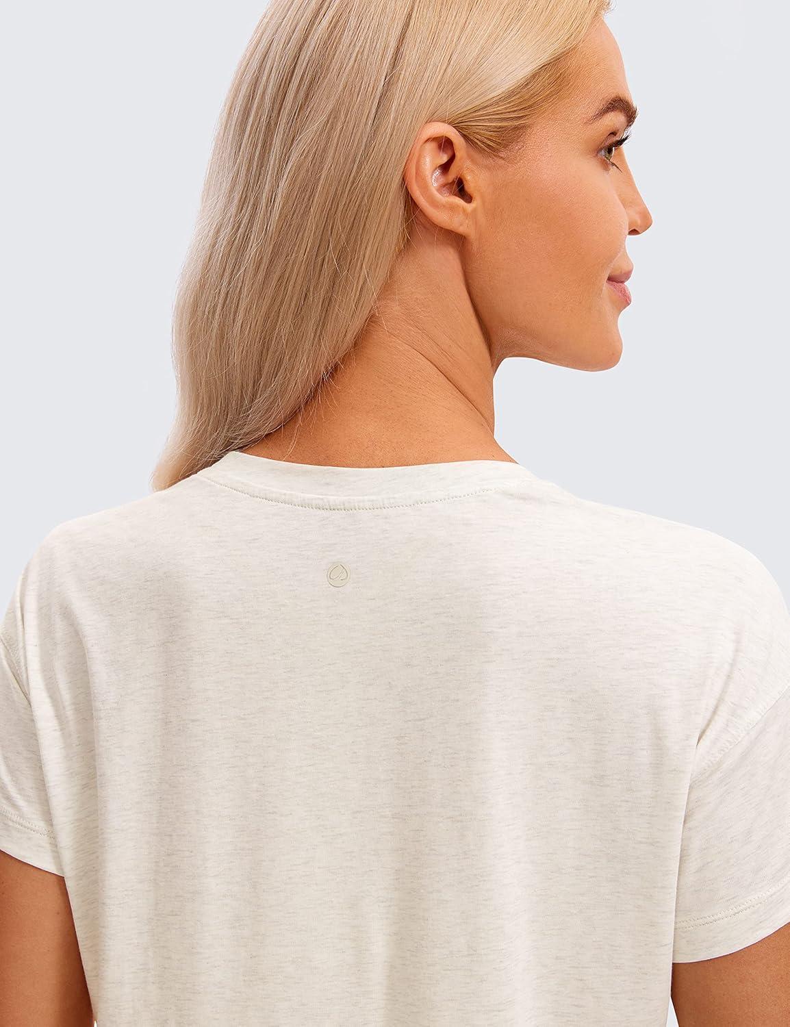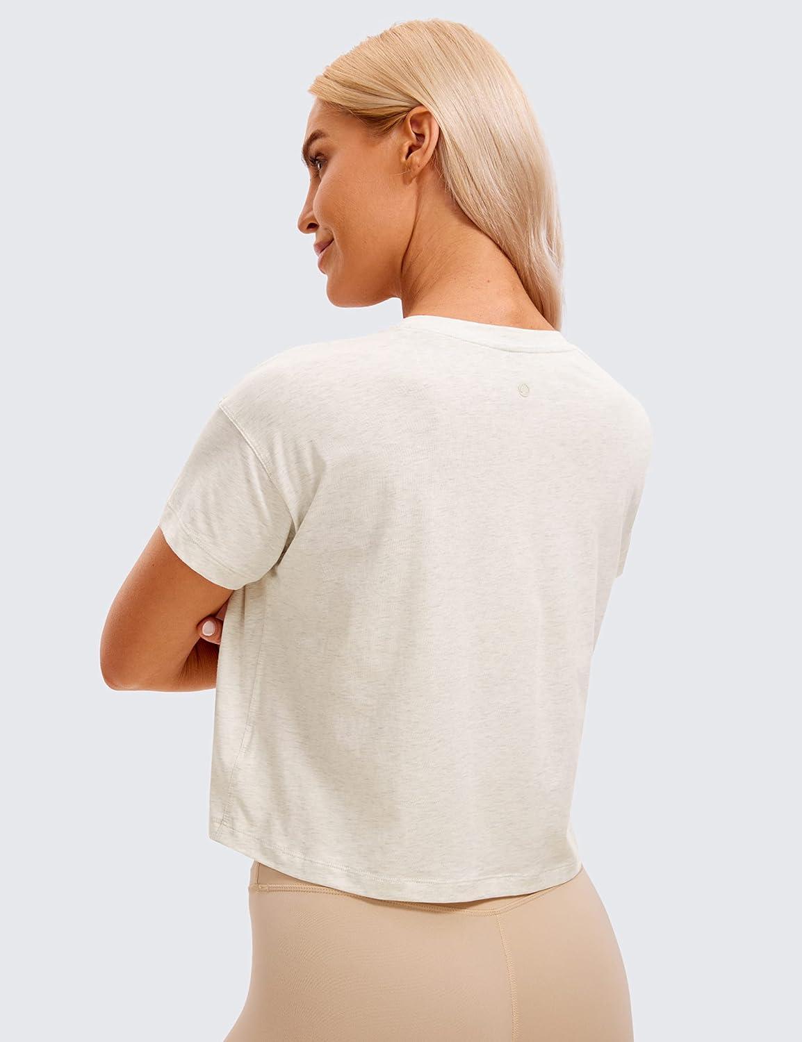 CRZ YOGA Pima Cotton Relaxed Crop T-Shirts for Women – Workout Athletic Gym Casual Short Sleeve Shirts Loose Crewneck Tops(Ice Grey/White)