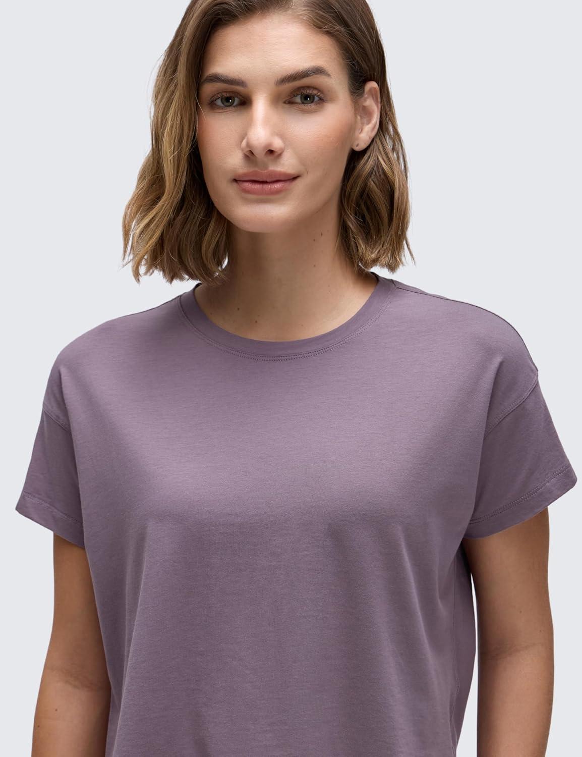 CRZ YOGA Pima Cotton Relaxed Crop T-Shirts for Women – Workout Athletic Gym Casual Short Sleeve Shirts Loose Crewneck Tops(Purple Gray)