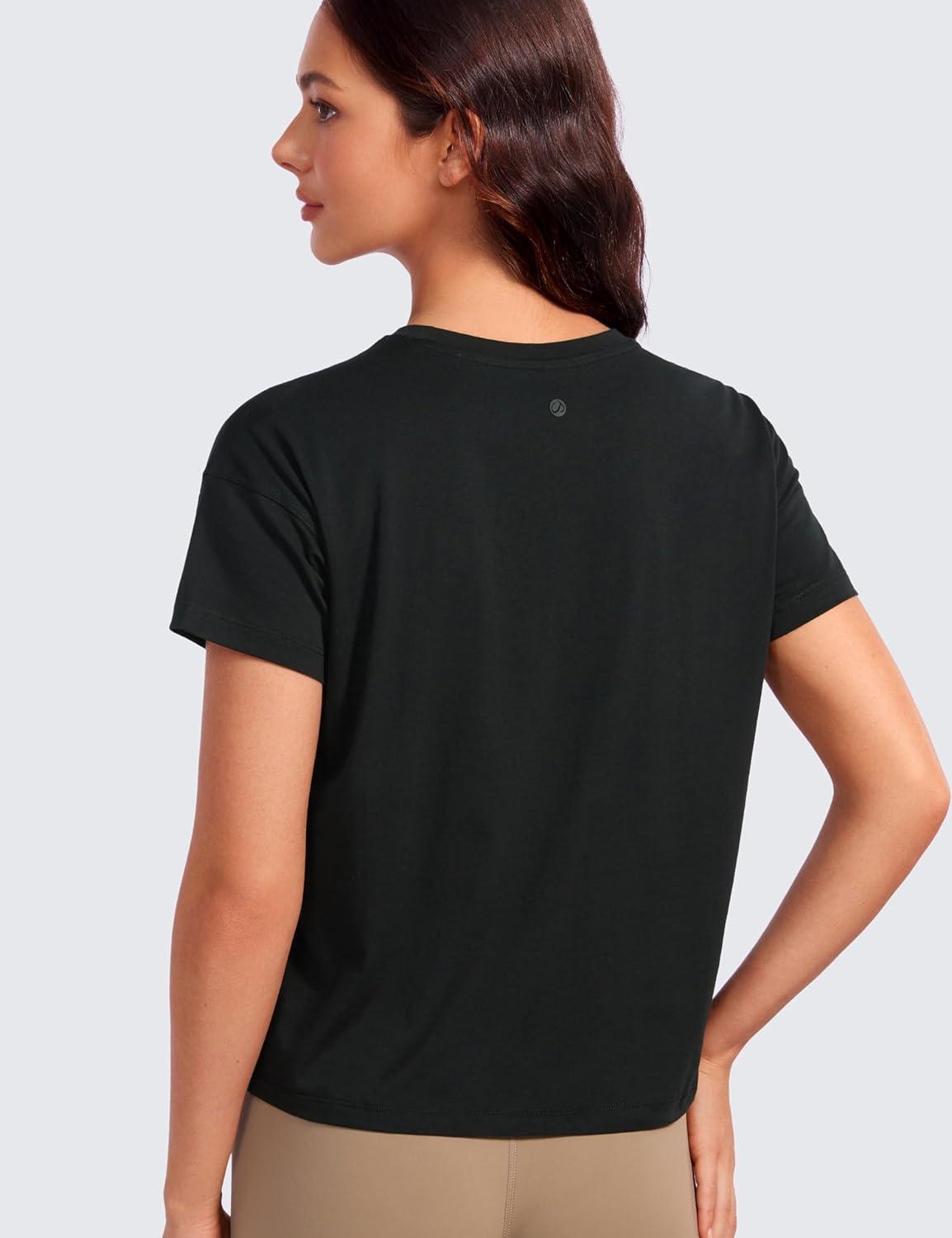 CRZ YOGA Pima Cotton Relaxed T-Shirts for Women – Workout Athletic Gym Casual Short Sleeve Shirts Basic Crewneck Hip Tops(Black)