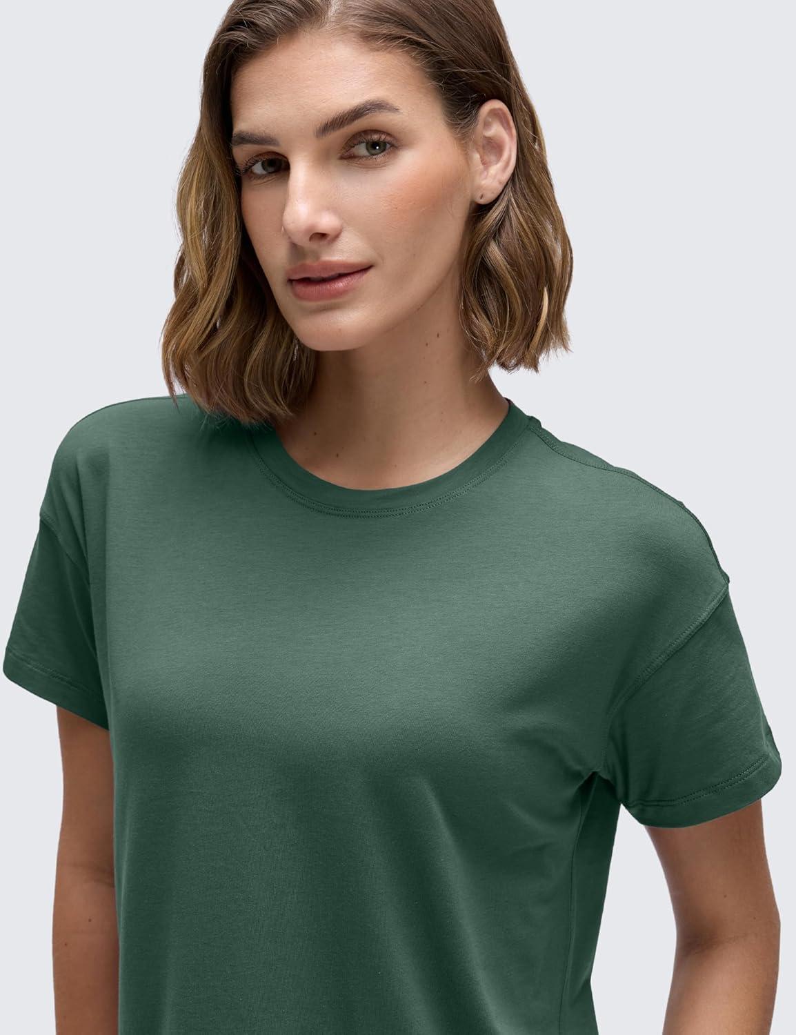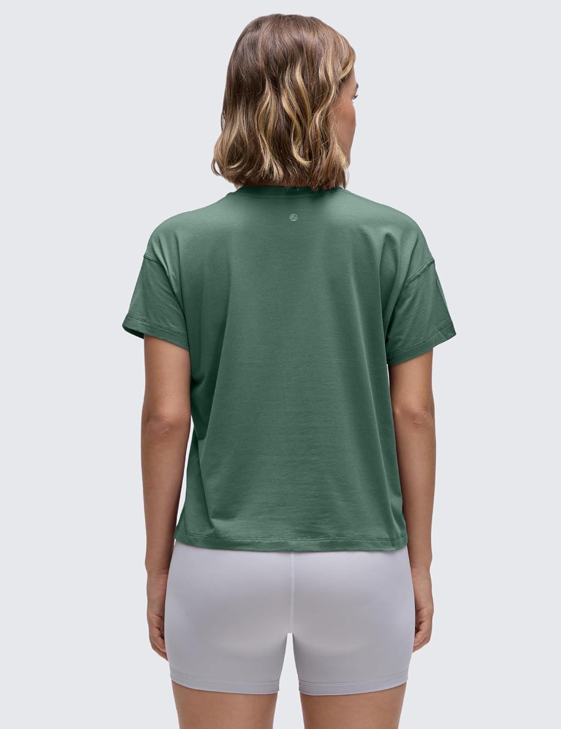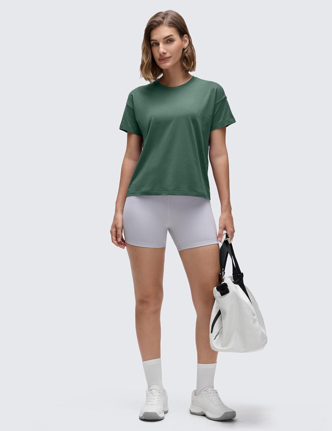 CRZ YOGA Pima Cotton Relaxed T-Shirts for Women – Workout Athletic Gym Casual Short Sleeve Shirts Basic Crewneck Hip Tops(Graphite Green)