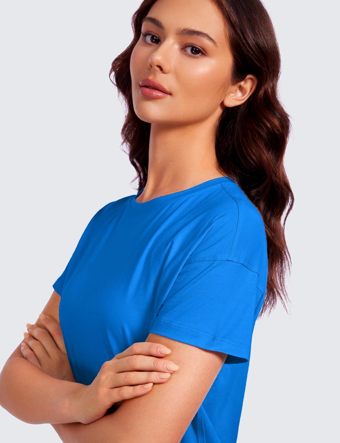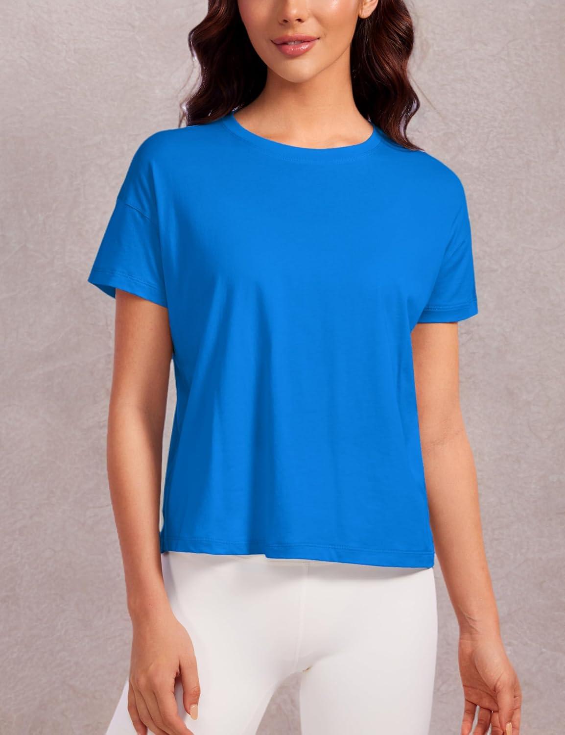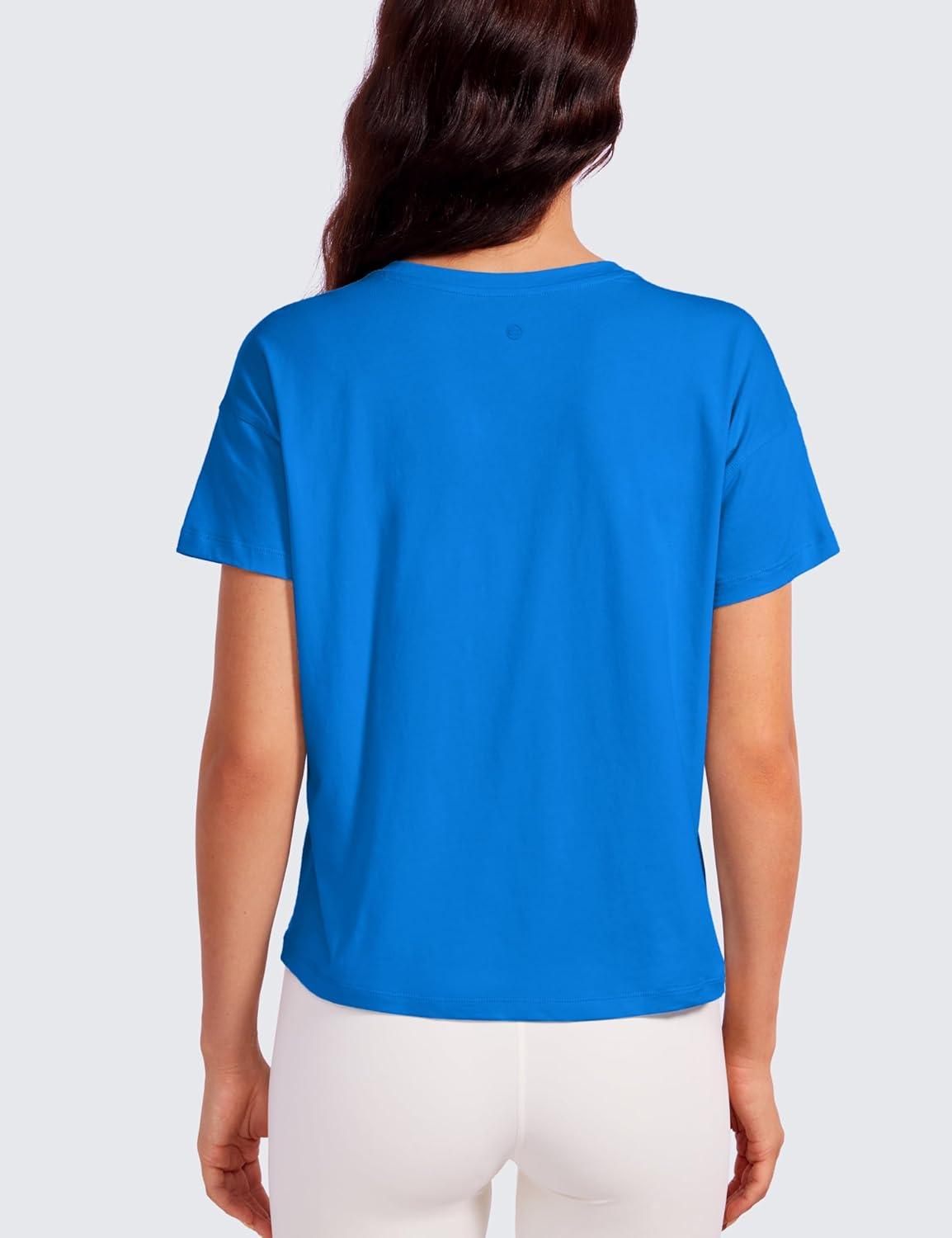 CRZ YOGA Pima Cotton Relaxed T-Shirts for Women – Workout Athletic Gym Casual Short Sleeve Shirts Basic Crewneck Hip Tops(Sparkle Blue)