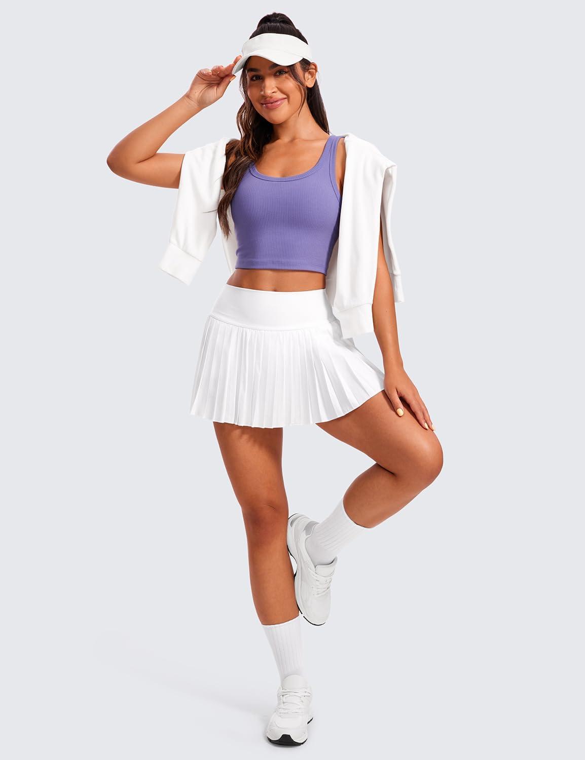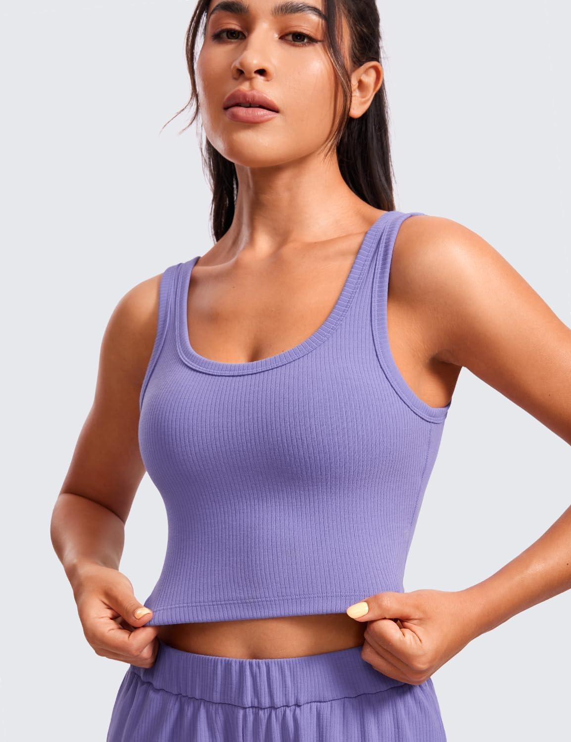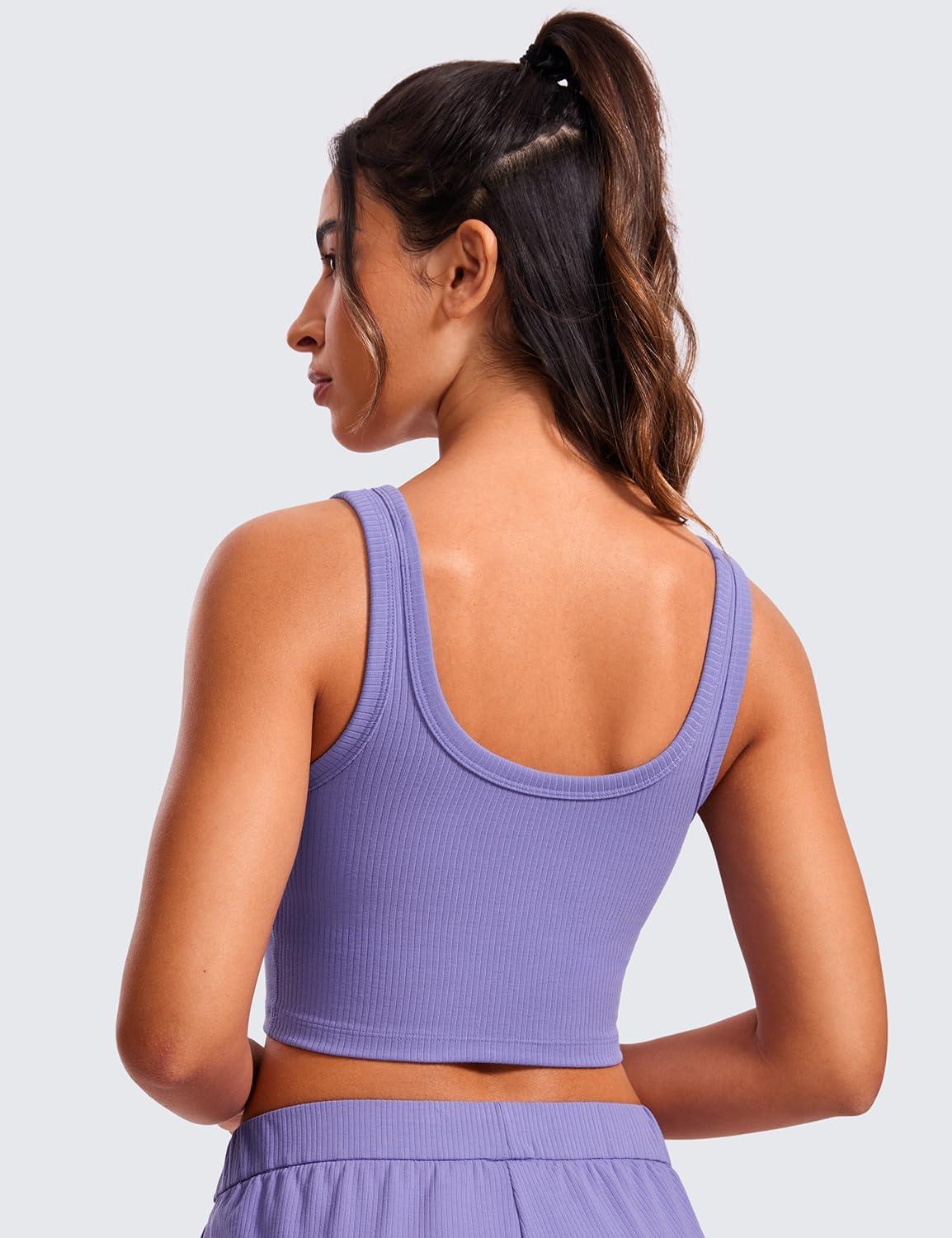 CRZ YOGA Ribbed Scoop Neck Crop Tank Tops for Women – Padded Longline Sports Bras Yoga Workout Cami(Dark Lavender Purple)