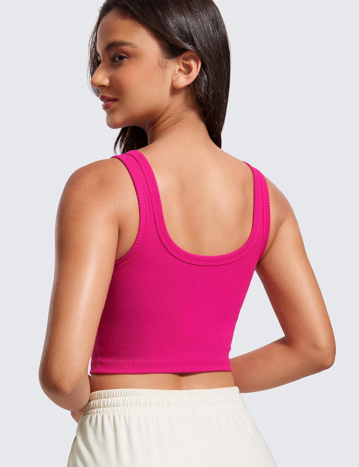 CRZ YOGA Ribbed Scoop Neck Crop Tank Tops for Women – Padded Longline Sports Bras Yoga Workout Cami(Granita Pink)