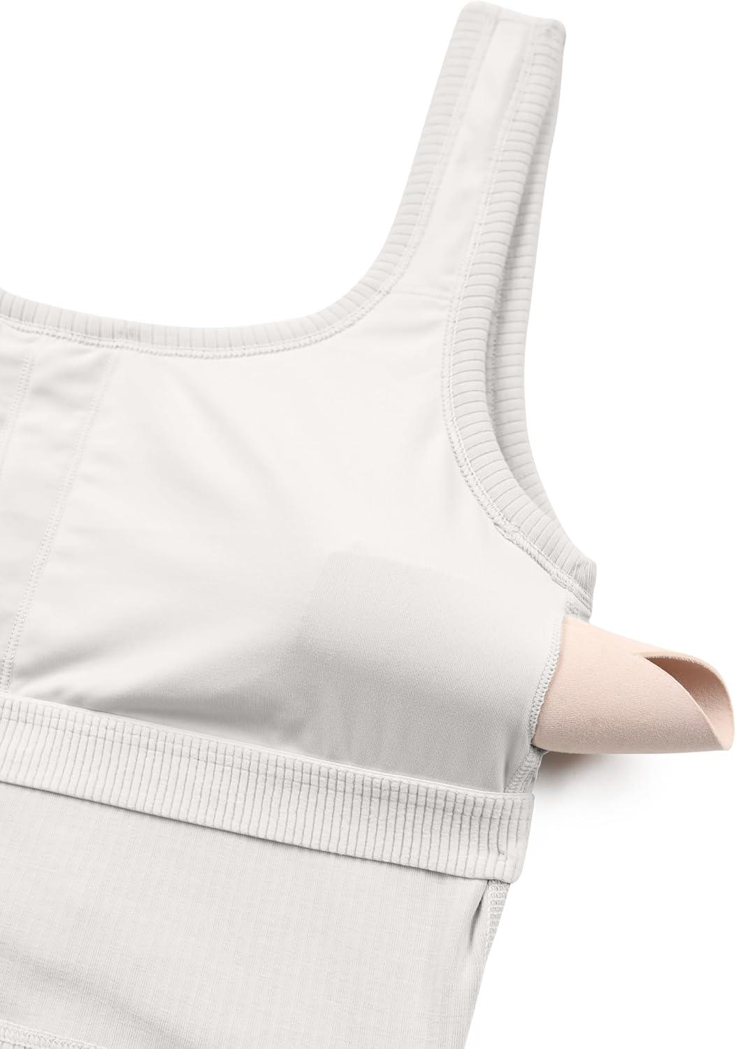 CRZ YOGA Ribbed Scoop Neck Crop Tank Tops for Women – Padded Longline Sports Bras Yoga Workout Cami(Milky White (Bone))