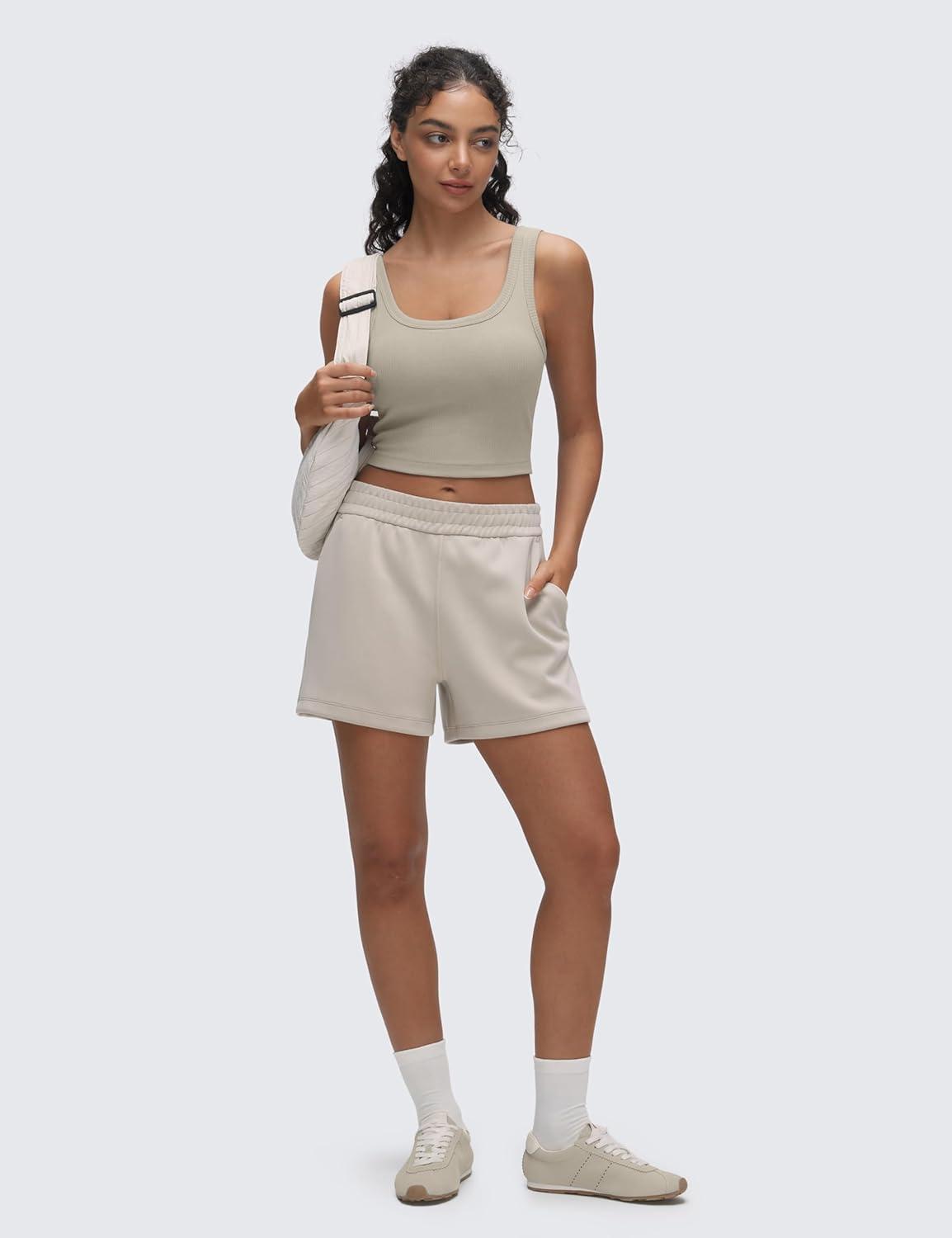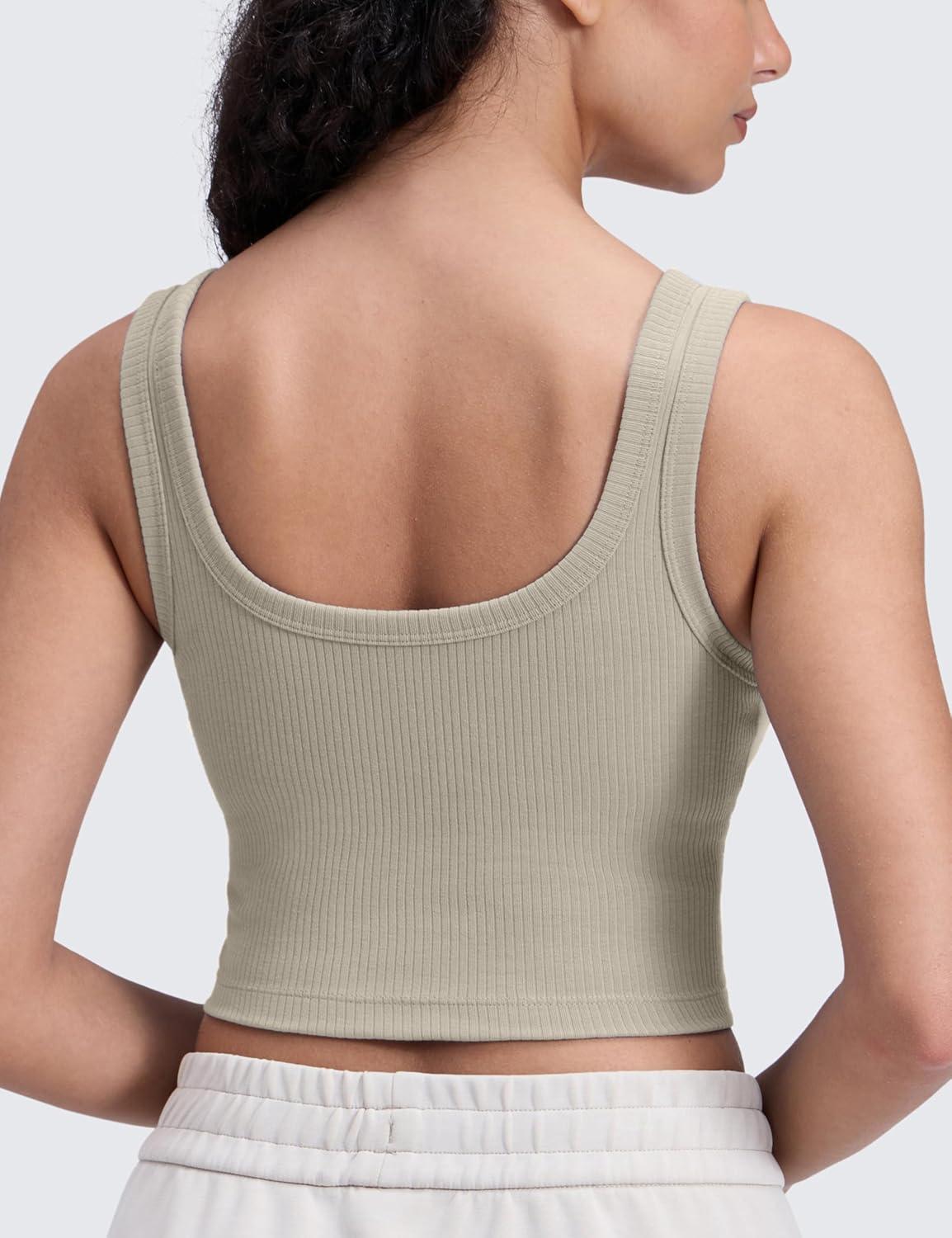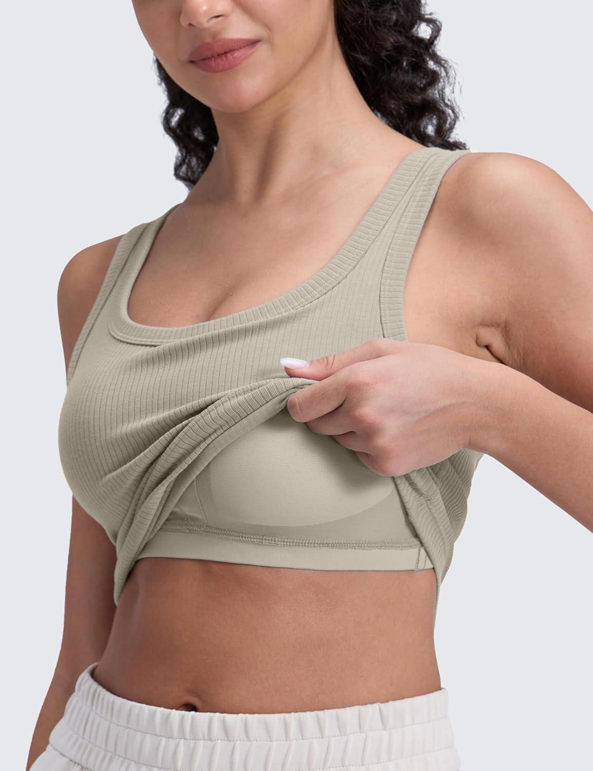 CRZ YOGA Ribbed Scoop Neck Crop Tank Tops for Women – Padded Longline Sports Bras Yoga Workout Cami(Warm Ash Grey)